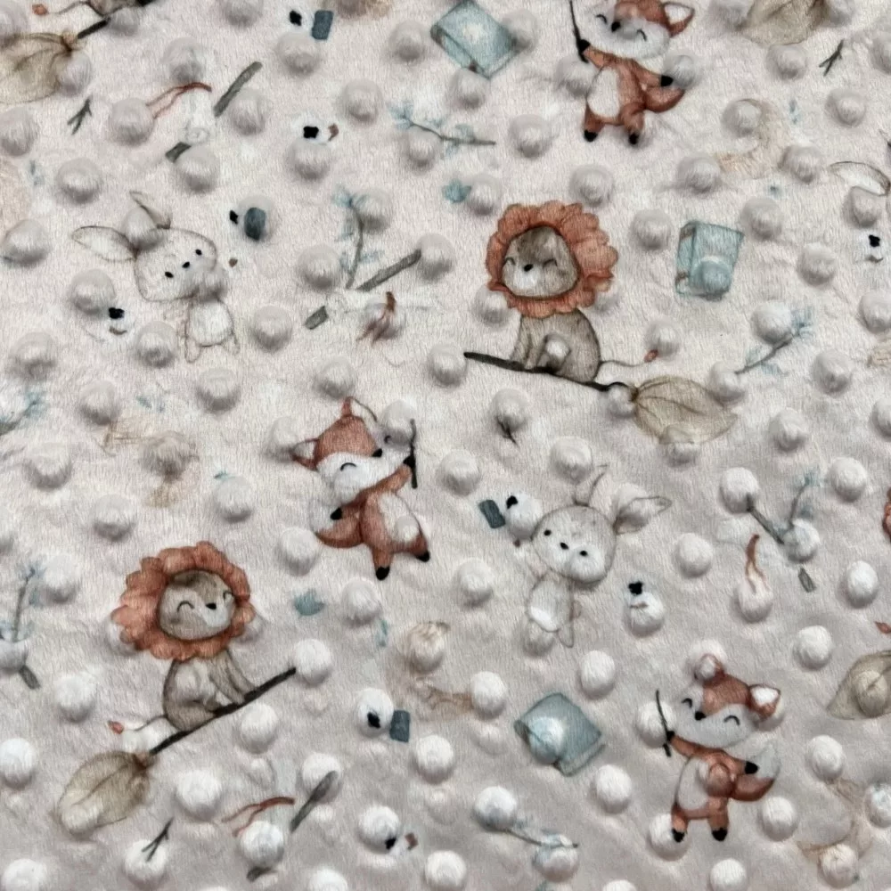 0.42 m EGYBEN KÉRHETŐ Bézs alapon oroszlános-rókás minky plüss