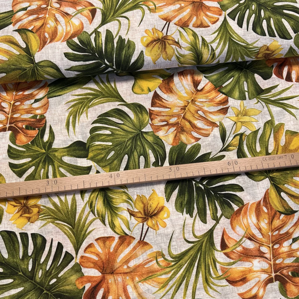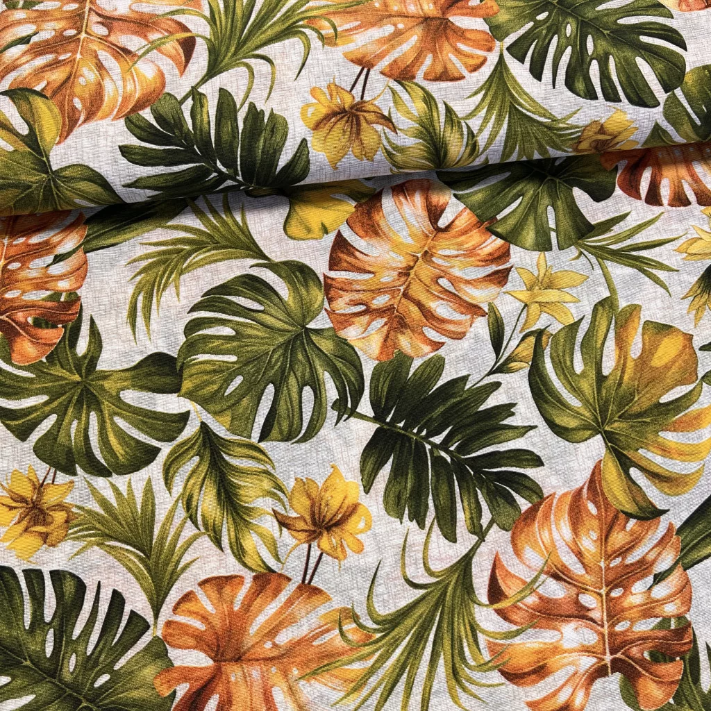 0,18 m EGYBEN KÉRHETŐ Narancs-zöld pálmaleveles dekortextil (A)