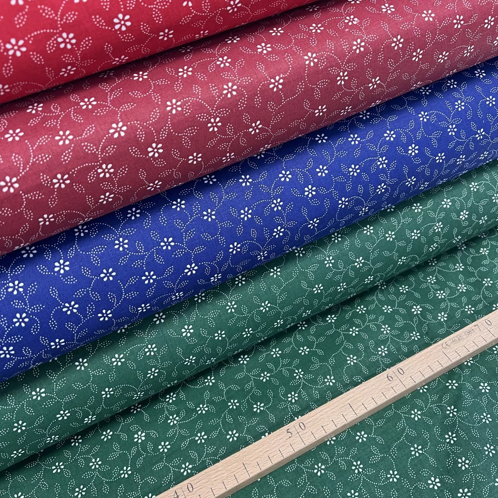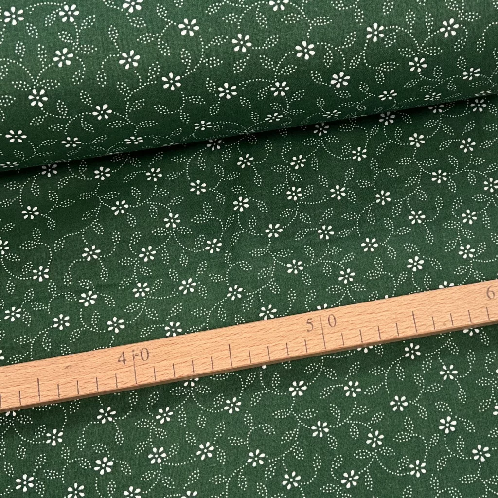 0,33 m EGYBEN KÉRHETŐ Zöld alapon pöttyökből álló leveles kékfestő jellegű pamutvászon