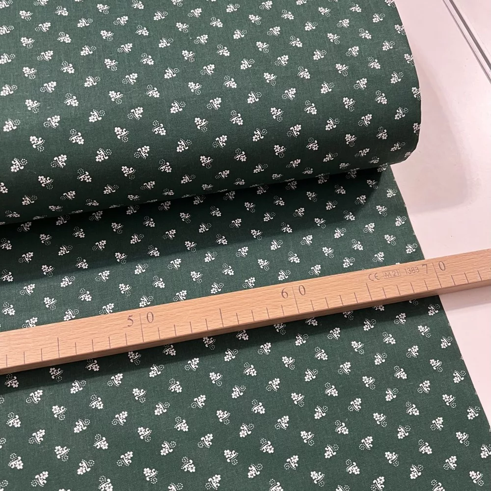 0,43 m EGYBEN KÉRHETŐ Sötétzöld a. fehér virágocska kékfestő jellegű pamutvászon