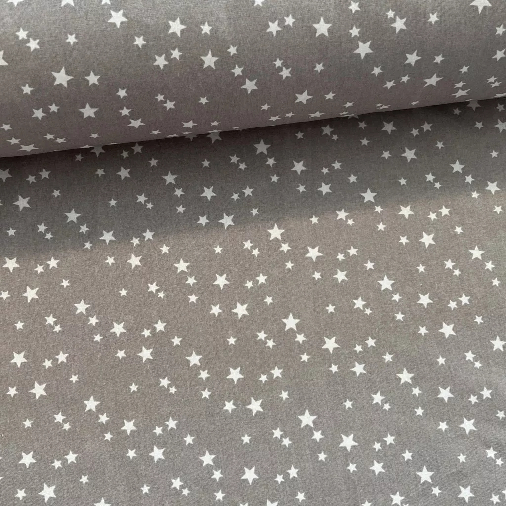0,48 m EGYBEN KÉRHETŐ Szürke alapon fehér csillagos 160 cm sz. pamutvászon (KA)