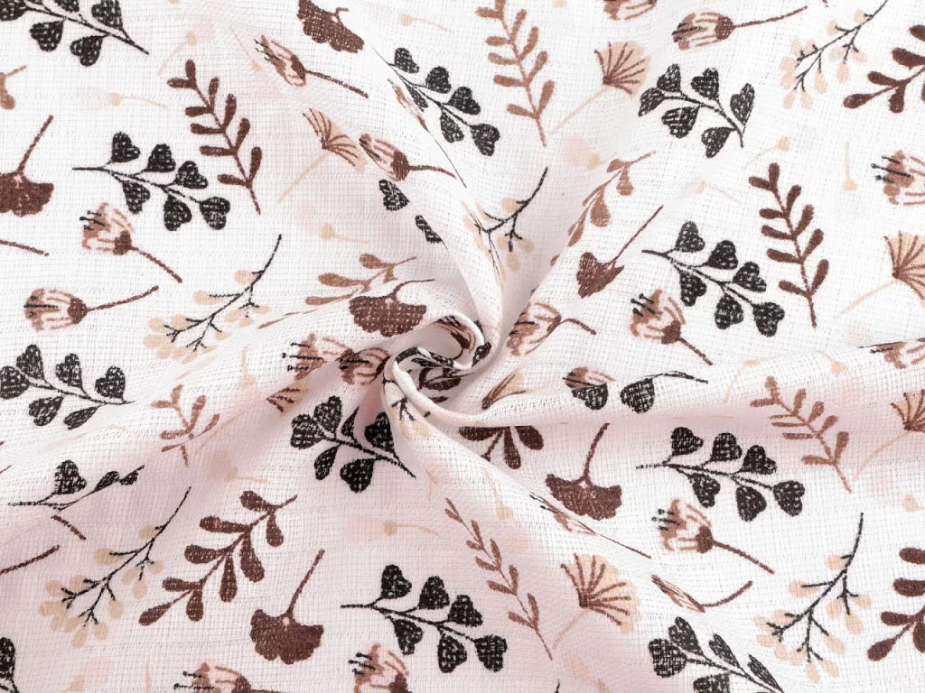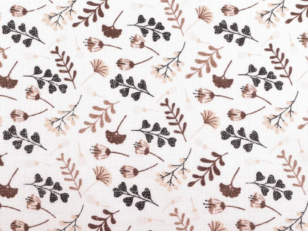 0,5 m EGYBEN KÉRHETŐ Fehér-barna termés-leveles mintás tetra pelenka 80 cm széles