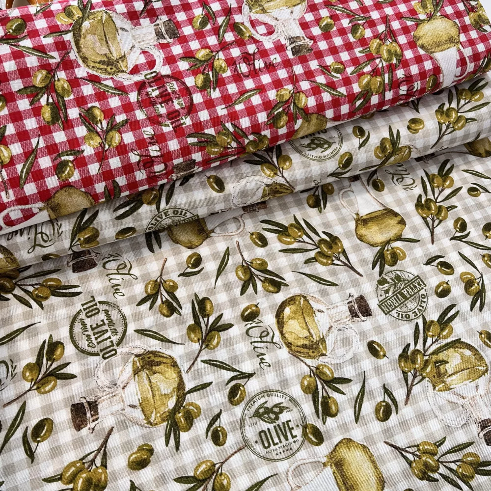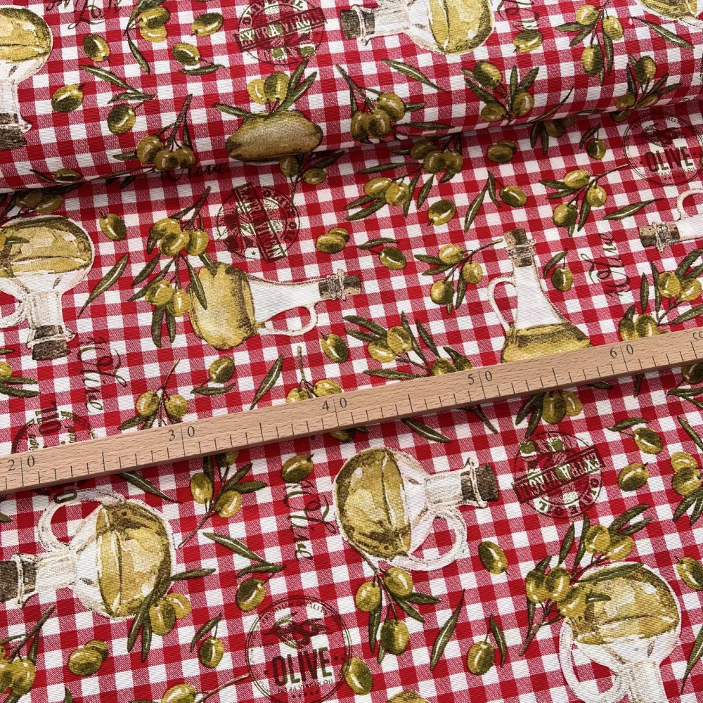 1,5 m EGYBEN KÉRHETŐ Extra Virgin Olive Oil: piros-fehér színvilágú dekortextil
