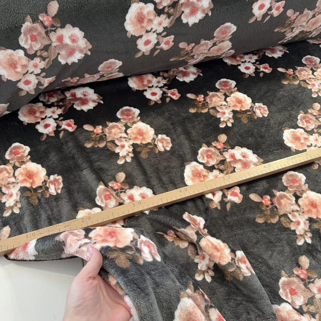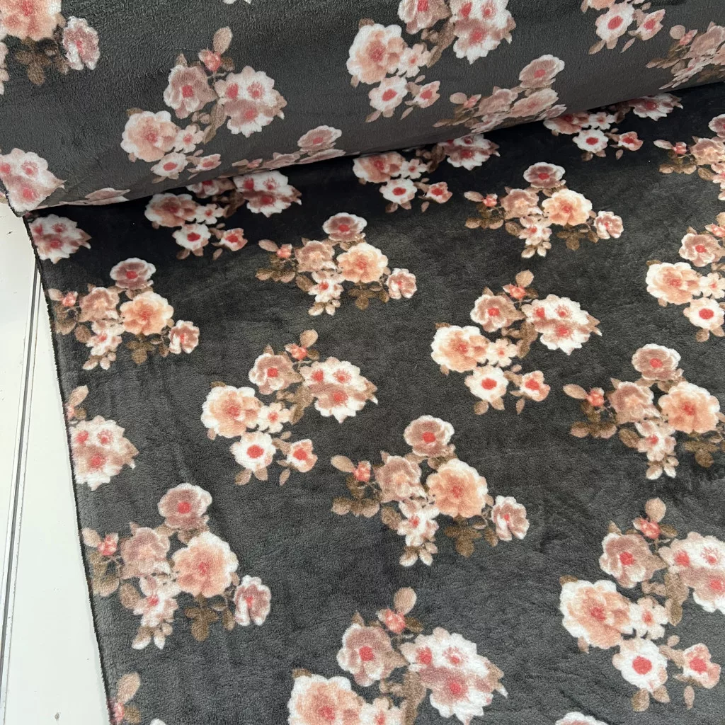 2 m EGYBEN KÉRHETŐ KIÁRUSÍTÁS: Sötét szürke alapon virágos selymes típusú wellsoft
