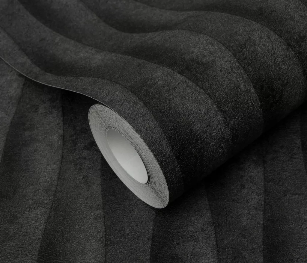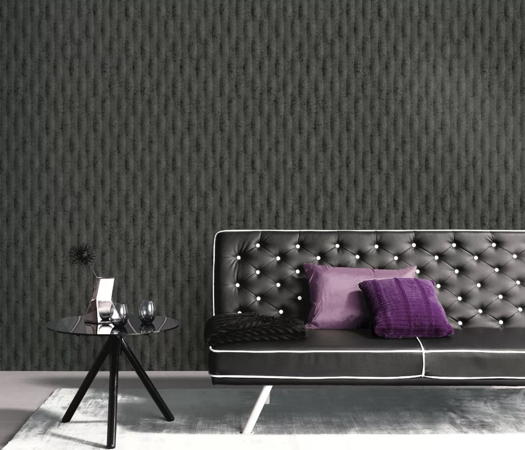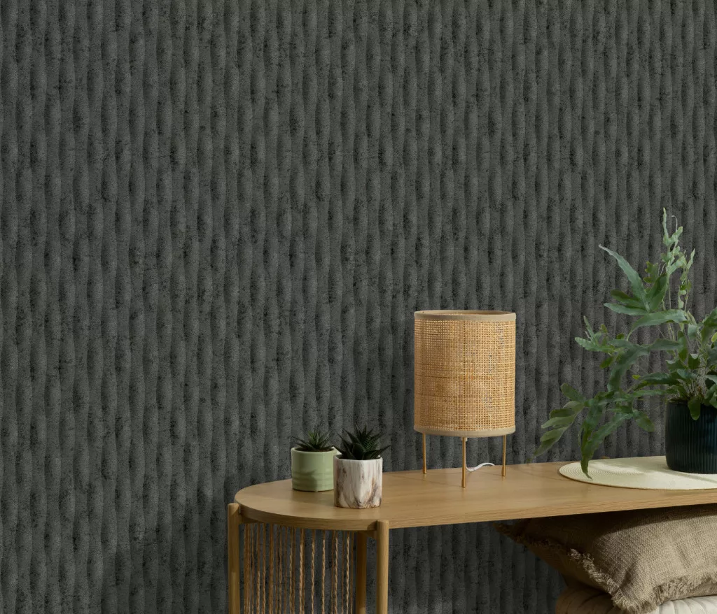 Antracit matt hullám mintás (lángálló, mosható) vlies-vinyl tapéta