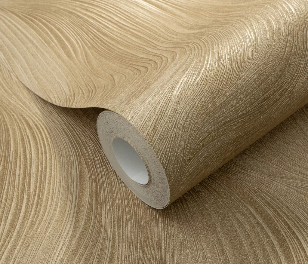Arany csillogó hullám mintás (lángálló, mosható) vlies-vinyl tapéta
