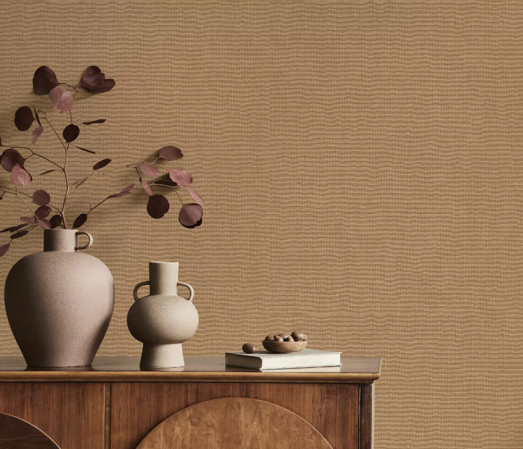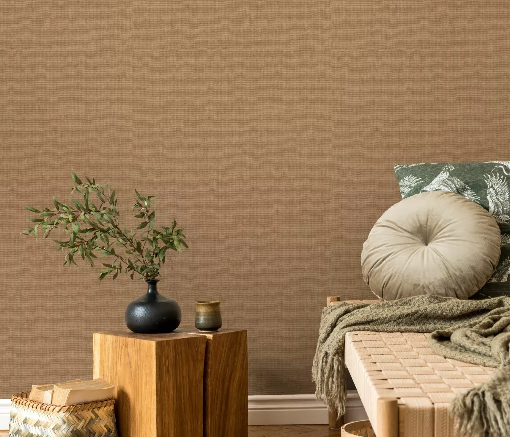 Barna alapon ezüst csillámos egyszínű strukturált vlies-vinyl tapéta