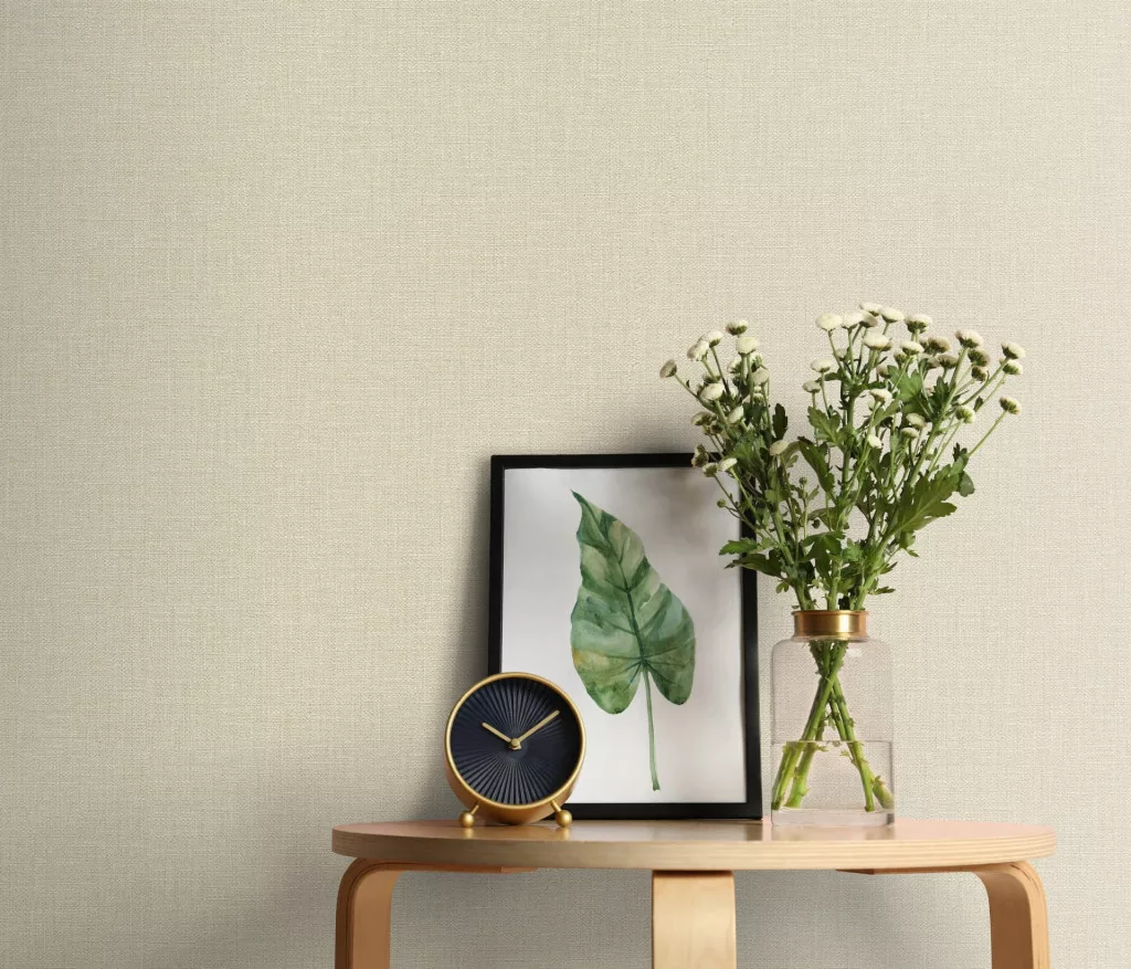 Bézs lenes textúrájú egyszínű (lángálló, mosható) vlies-vinyl tapéta