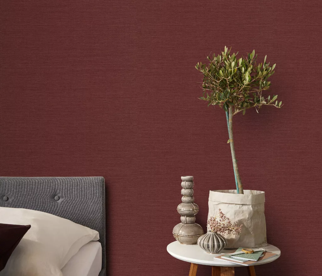 Bordó matt egyszínű szövött textil hatású (lángálló, mosható) vlies-vinyl tapéta