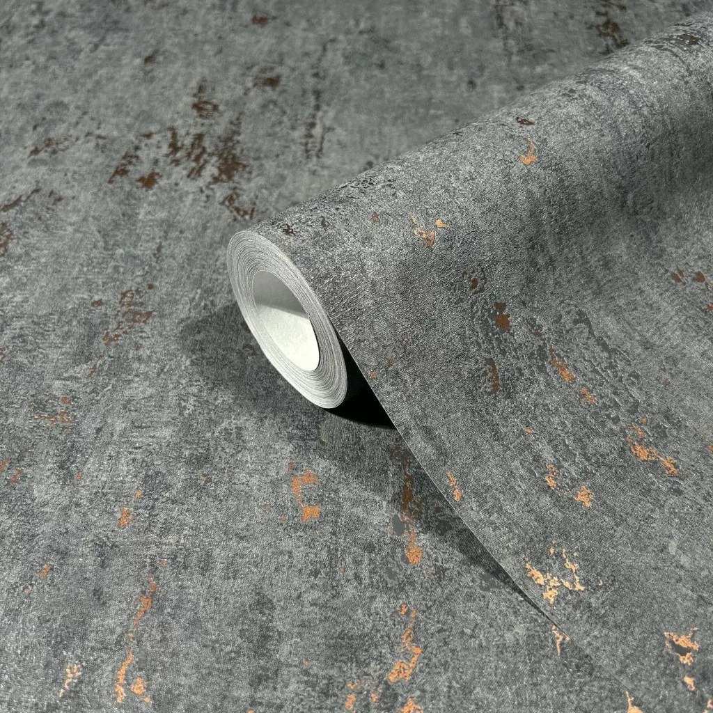 City Romance Beton: fekete alapon arany fényes mintás vlies-vinyl tapéta