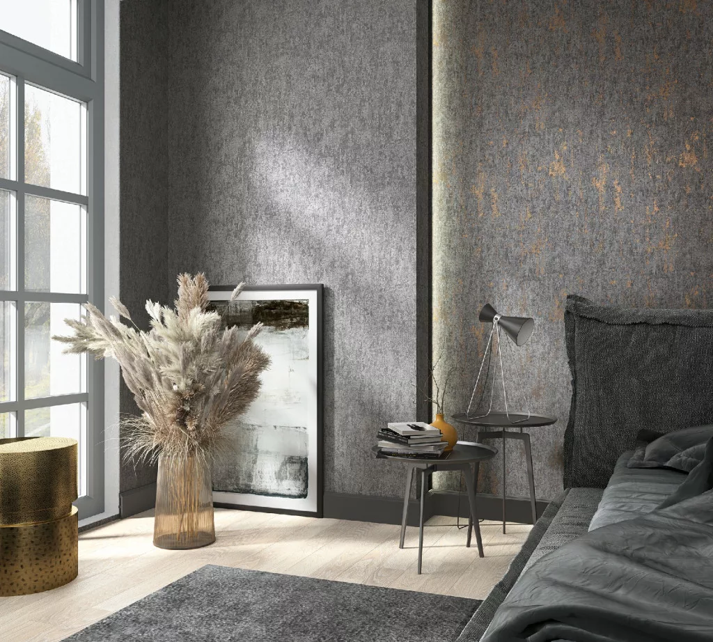 City Romance Beton: matt fekete (antracit) mintás vlies-vinyl tapéta