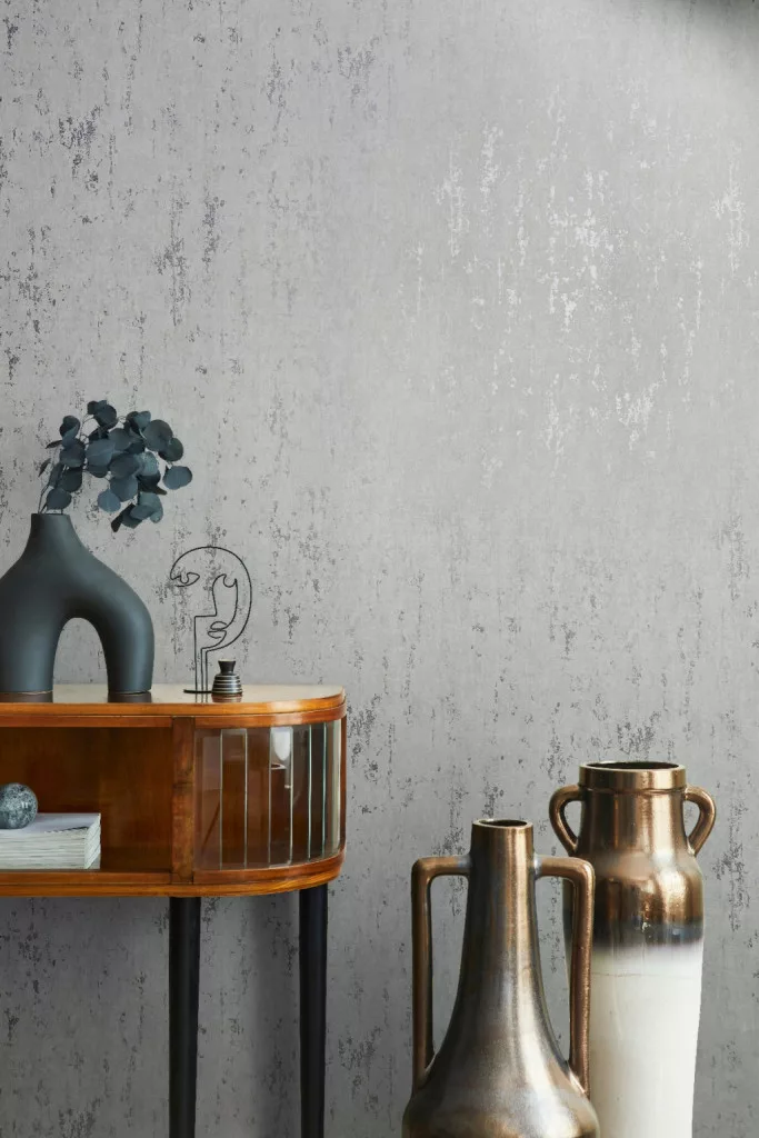 City Romance Beton: v.szürke alapon ezüst fényes mintás vlies-vinyl tapéta