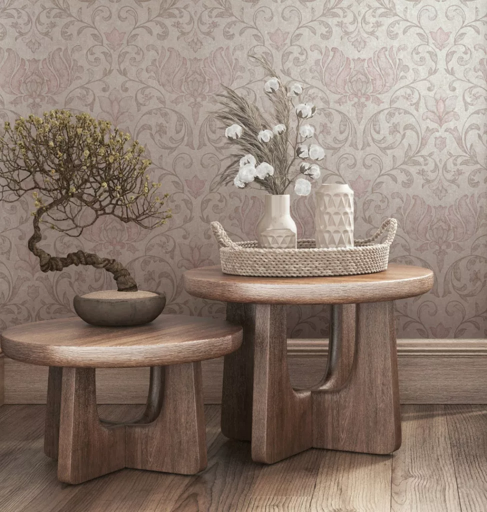 City Romance Indás: krém a. mályvás rózsaszínes inda mintás vlies-vinyl tapéta