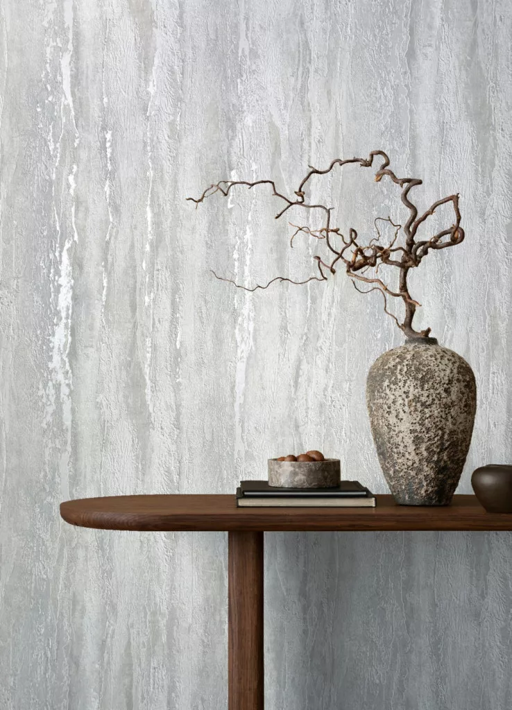 City Romance Mészkő: világosszürke és fehér alapon fényes mintás vlies-vinyl tapéta