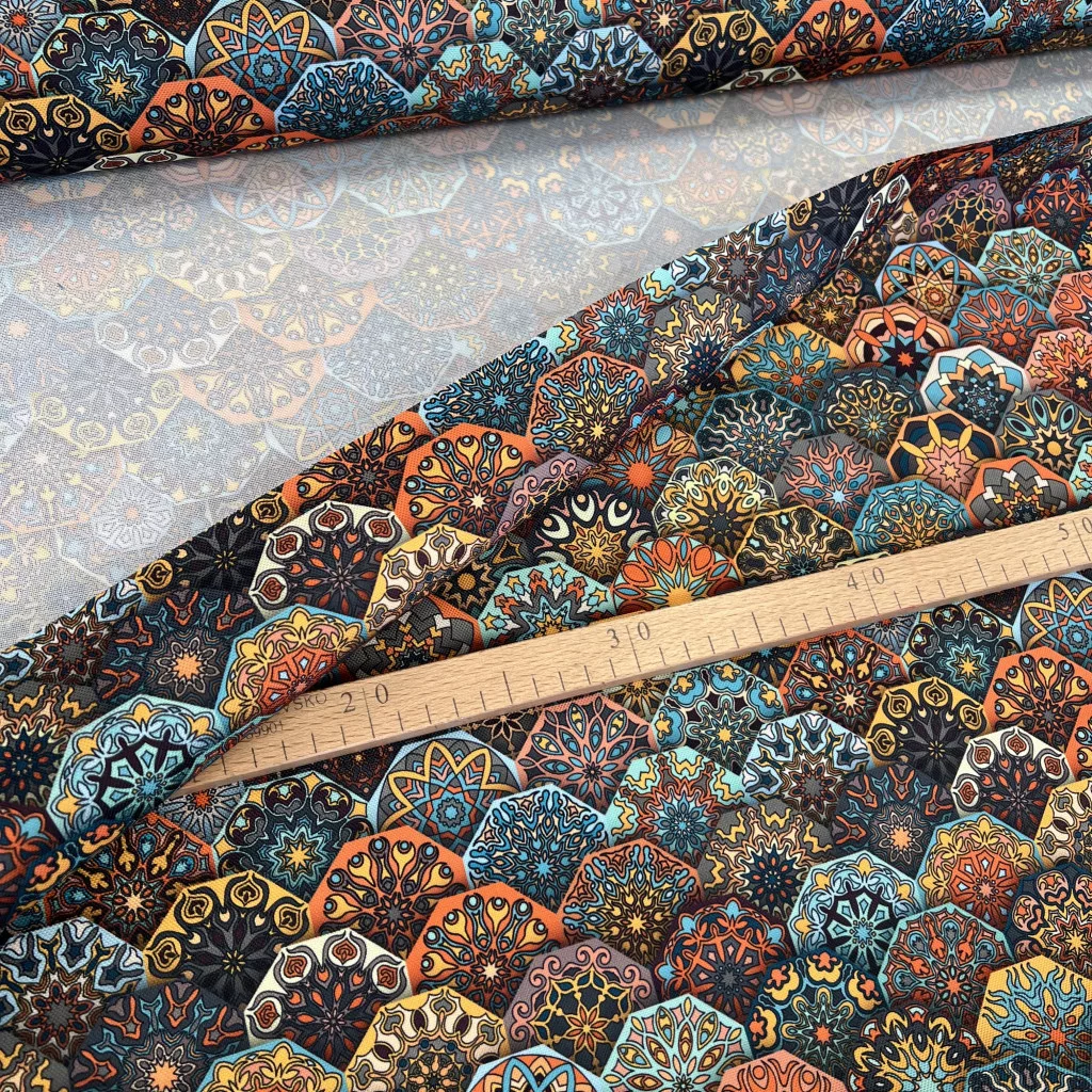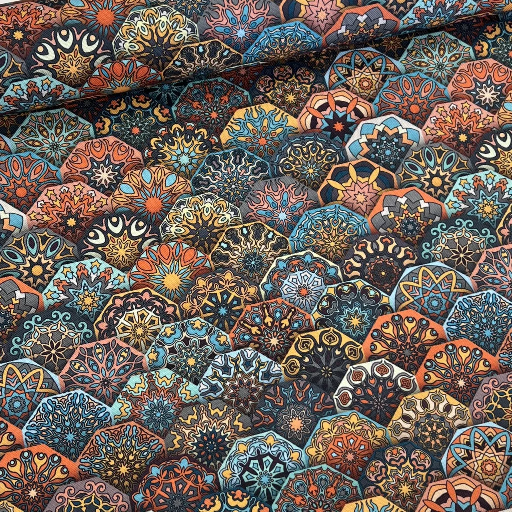 Designer vízálló szövet: Narancs-kék-szürke marokkói mintás