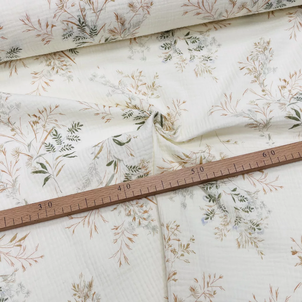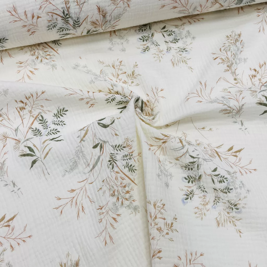 Dupla géz anyagaink 100% pamut összetételűek (140 cm szélesek). Az anyag nagyon puha és bőrbarát, hasonló a tapintása, mint a tetra pelenkának, csak ez még tömörebb és puhább. Vasalást nem igényel, mert alapból kicsit gyűrőttes hatása van. Mosás után könnyen szárad. Mosását max. 30-40 fokon ajánljuk, hogy ne menjen össze annyira. Akár 90 fokot is bír gond nélkül, ha nyálkendőnek használjuk, de ebben az esetben 10-15% zsugorodással kell számolni.