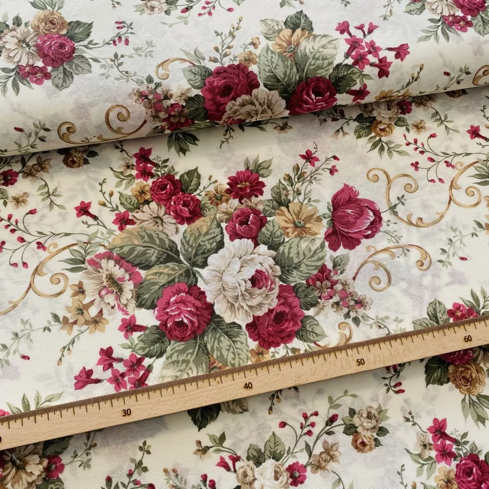 Ekrü alapon csodálatos rózsás dekortextil
