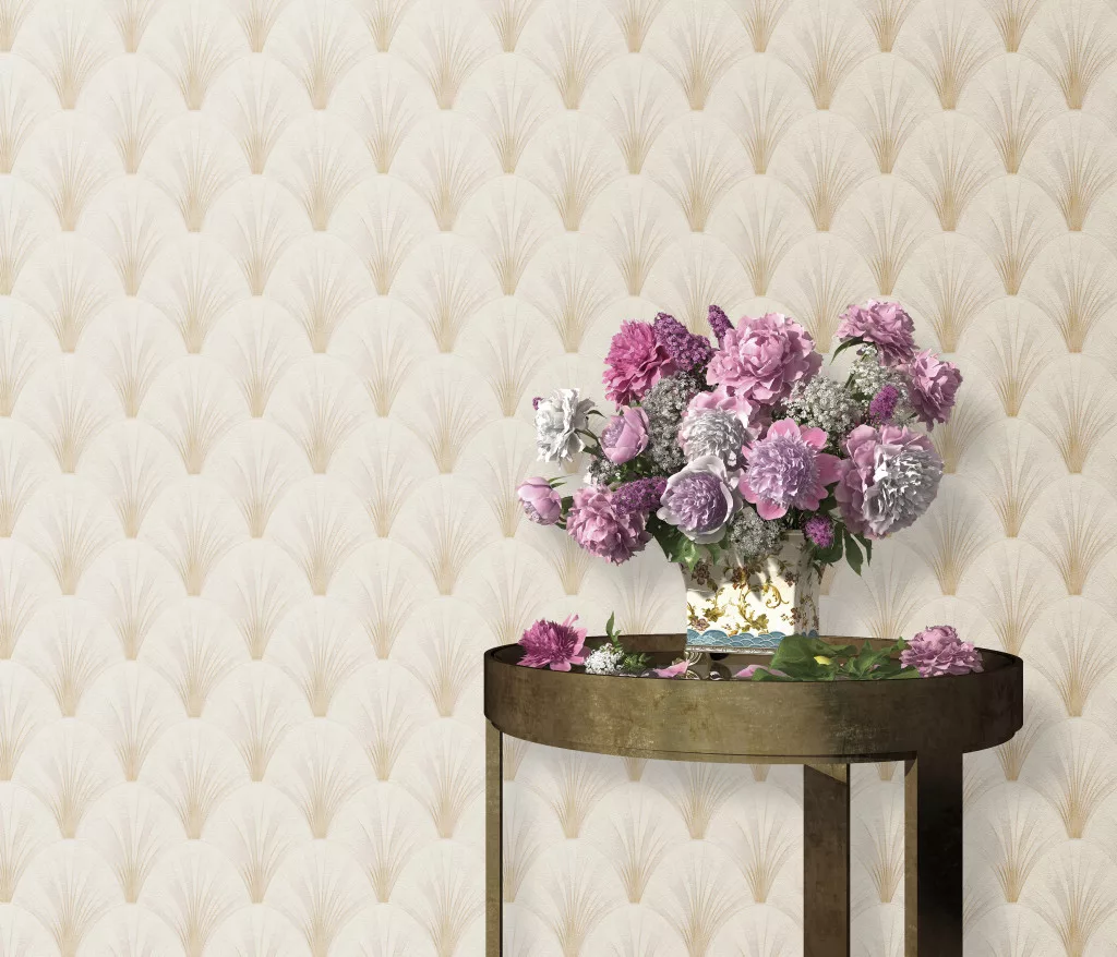 Elle Decoration 4 Krém-arany art deco mintás (lángálló, mosható) vlies-vinyl tapéta