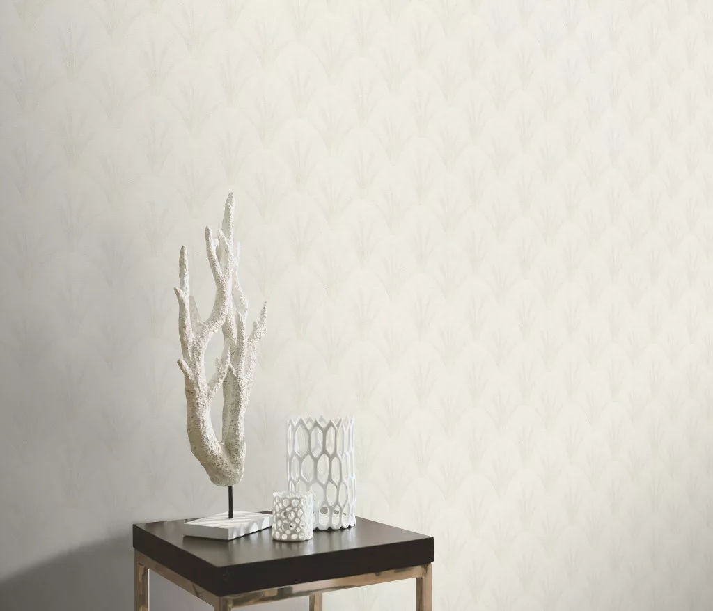 Elle Decoration 4 Törtfehér-gyöngyház art deco mintás (lángálló, mosható) vlies-vinyl tapéta