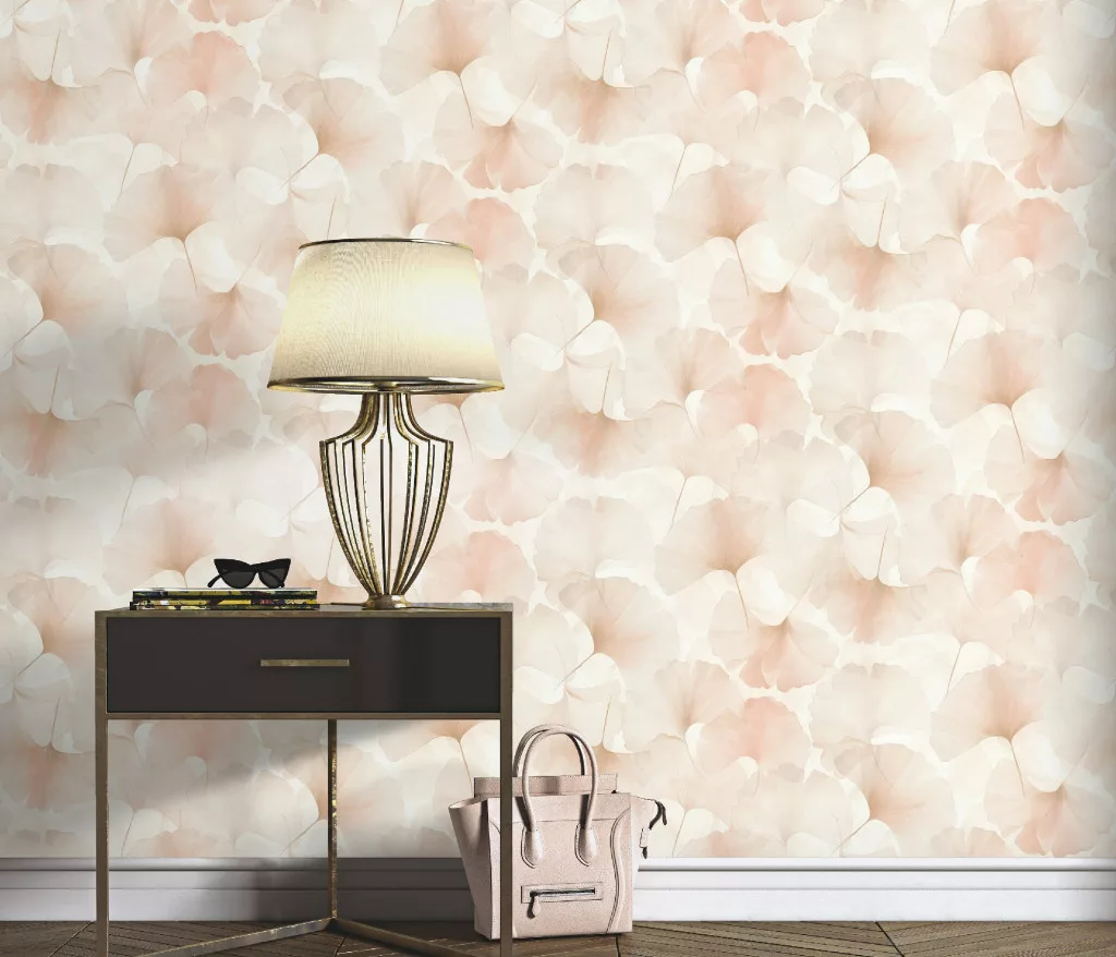 Elysium barackos szaténfényű Ginkgo Biloba (lángálló, mosható) vlies-vinyl tapéta