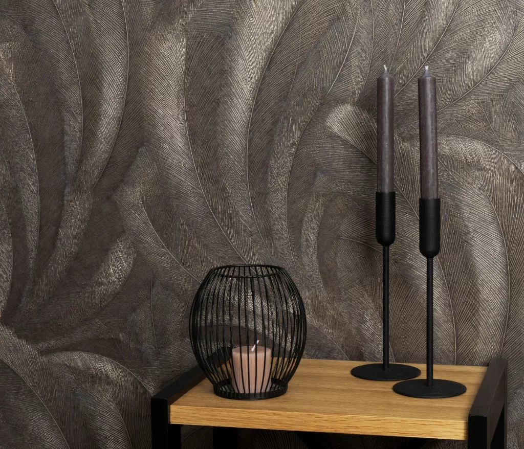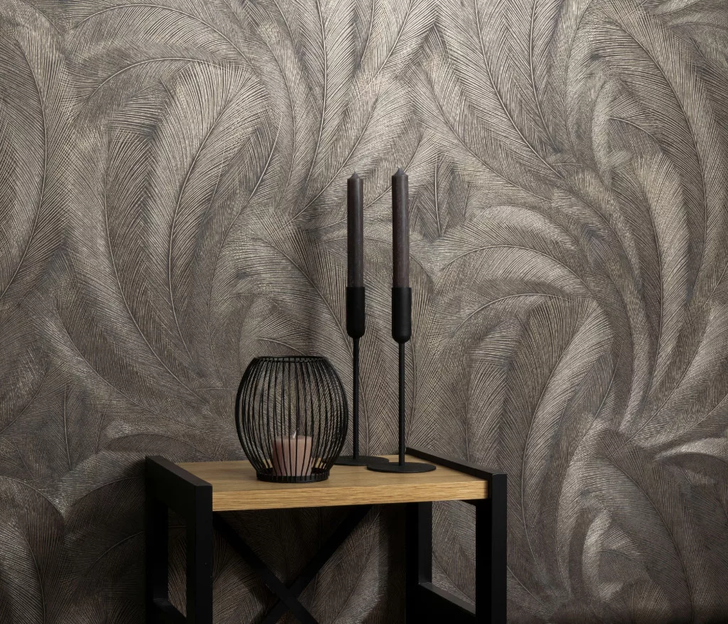 Elysium hidegbarna a. arany fényes toll mintás (lángálló, mosható) vlies-vinyl tapéta