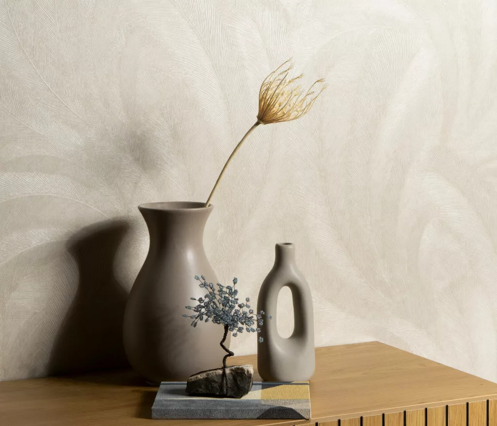 Elysium krém fényes toll mintás (lángálló, mosható) vlies-vinyl tapéta