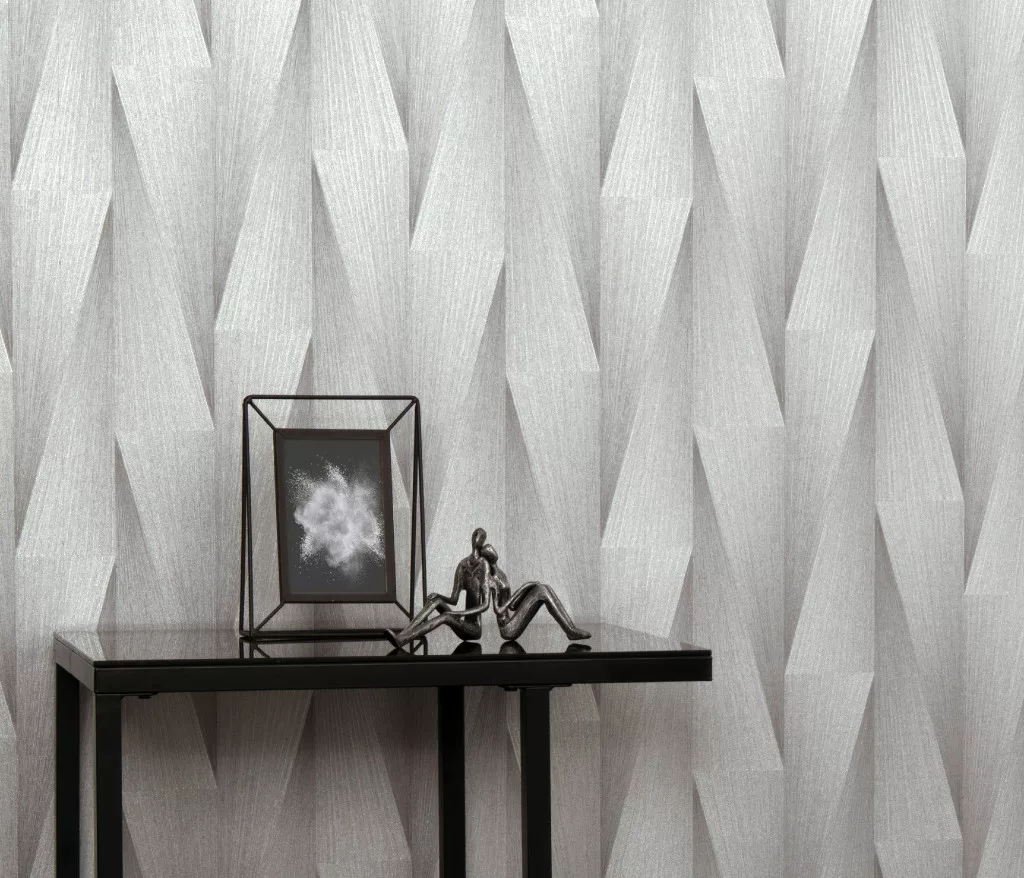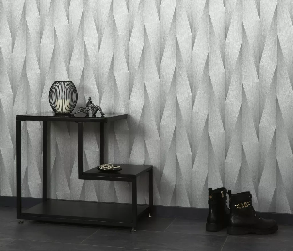 Ezüst 3D mintás (lángálló, mosható) vlies-vinyl tapéta