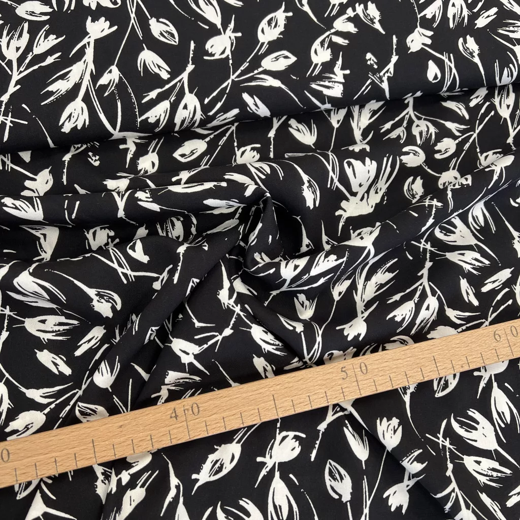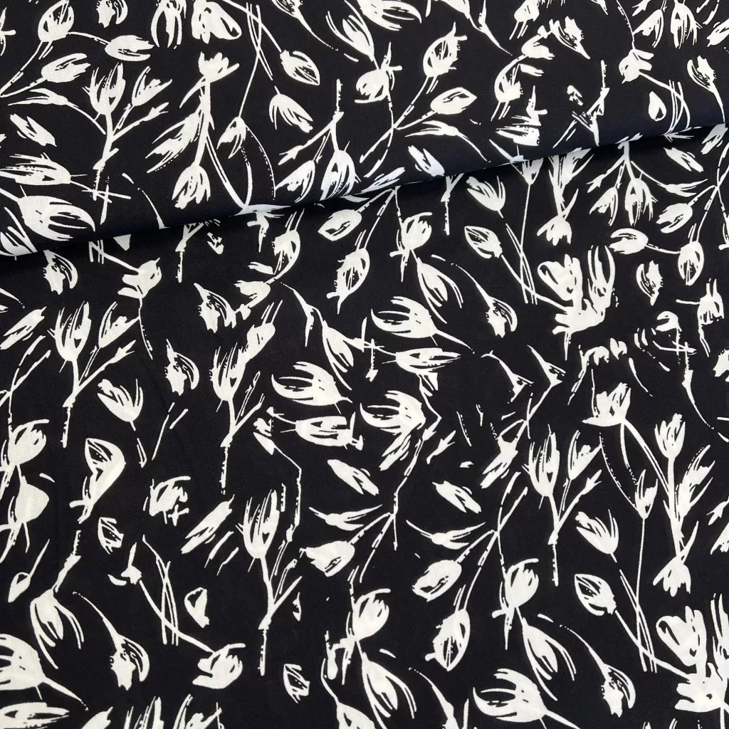 Fekete alapon FEHÉR tulipános viszkóz voile