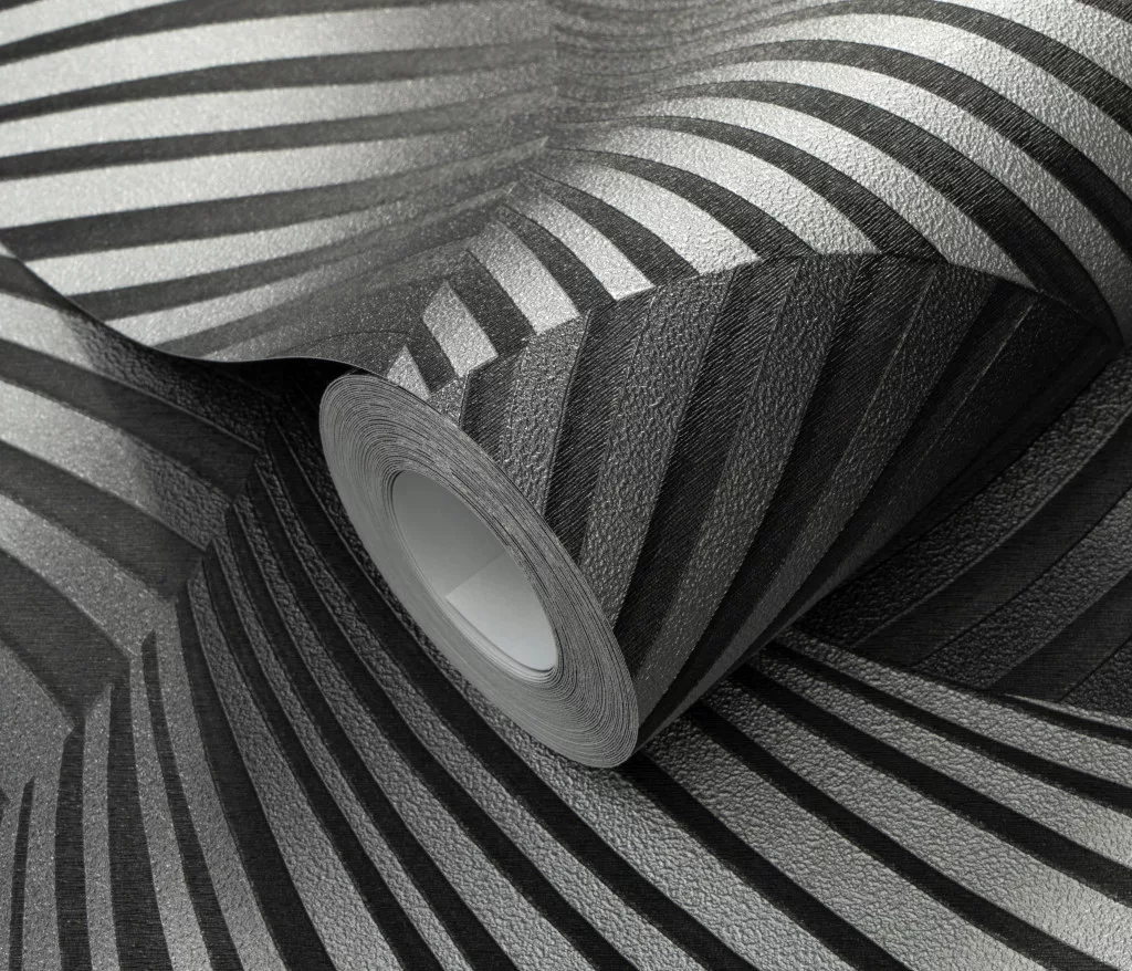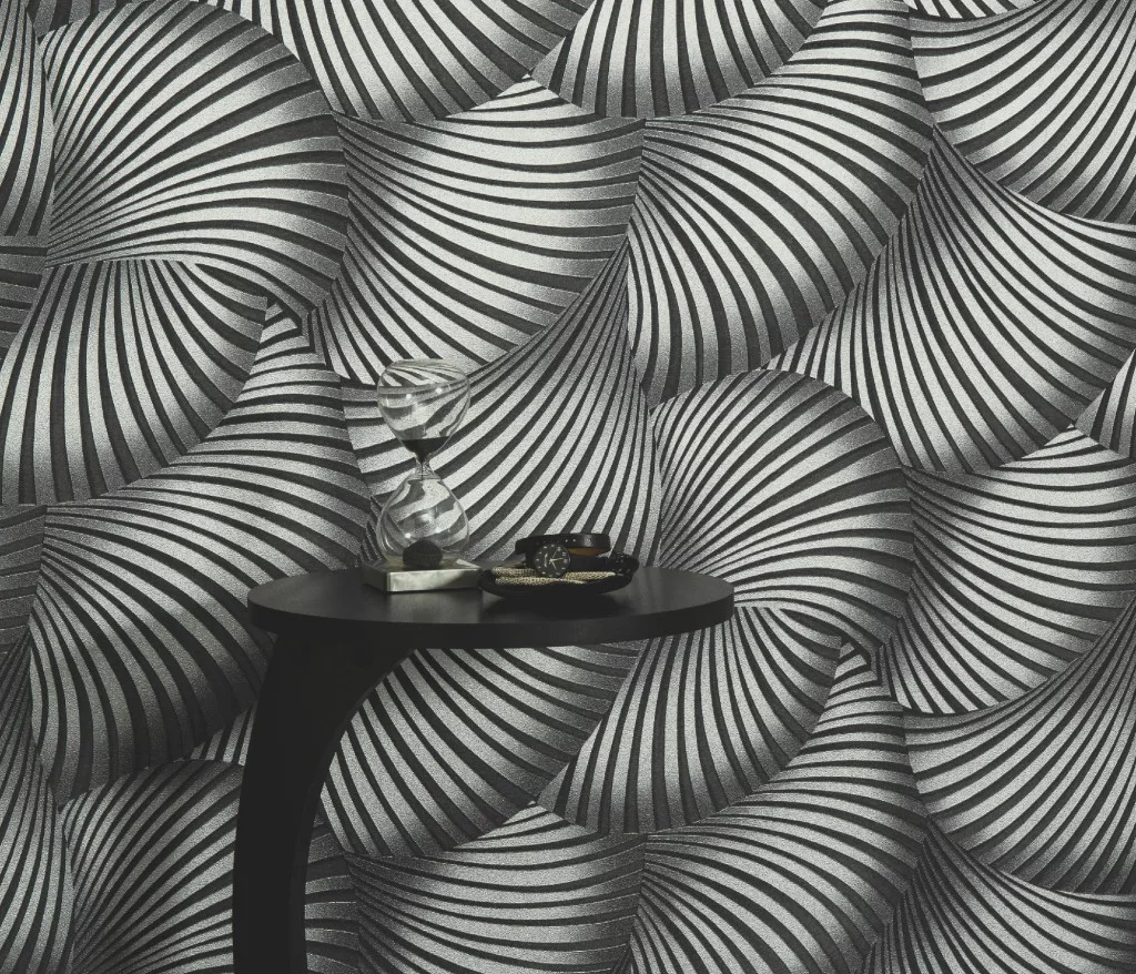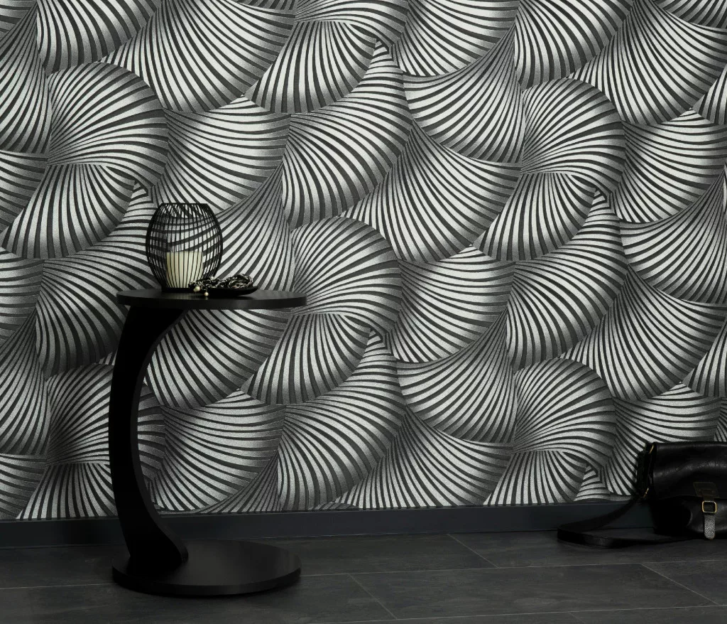 Fekete-ezüst designer mintás (lángálló, mosható) vlies-vinyl tapéta