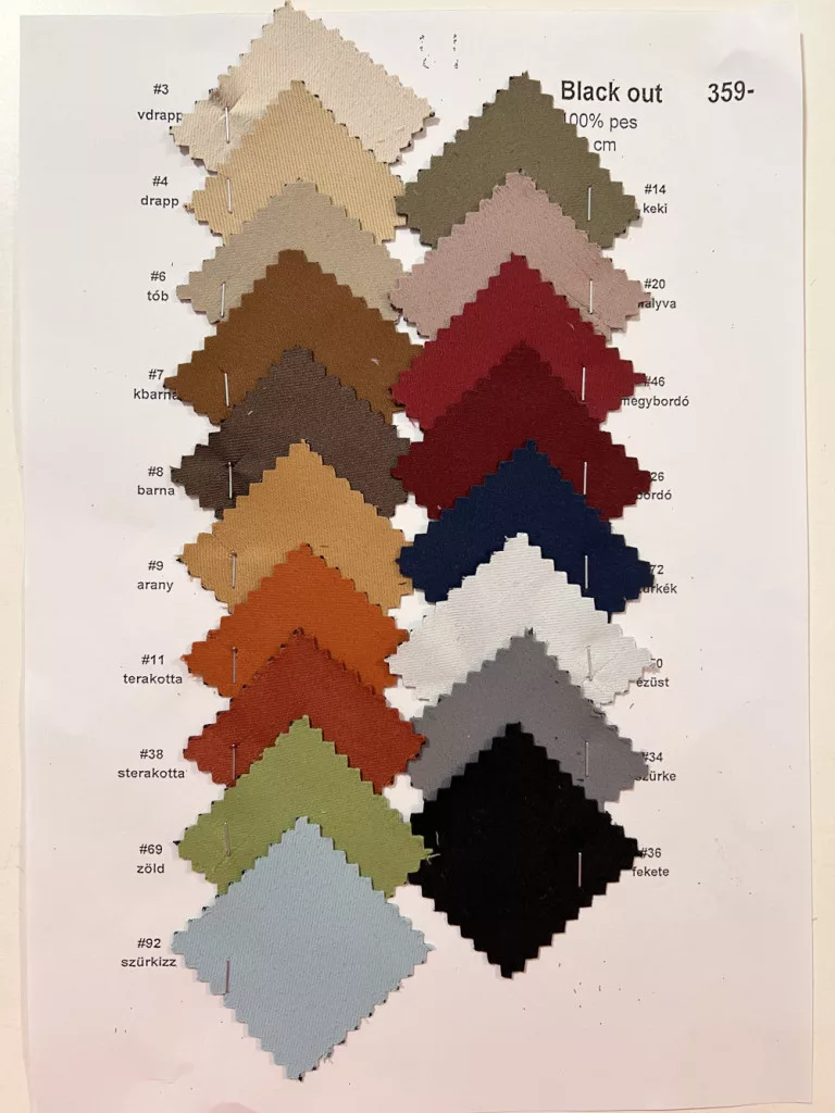 Amennyiben a 150 cm széles panelekből varrják össze a nagyobb anyagszélességet igénylő sötétítő függönyt, akkor mindenképpen azonos gyártási számú tekercsből érdemes az anyagot vásárolni, mert gyártás és gyártás között lehet szinte alig-alig észrevehető, de egymás mellé varrva már kissé látható szín különbség. Ha két különböző gyártási számú anyagból más-más ablakra kerül az anyag, azt a minimális színkülönbséget már nem szokták észlelni.