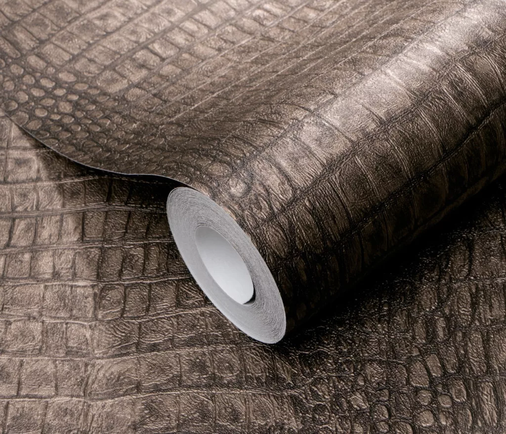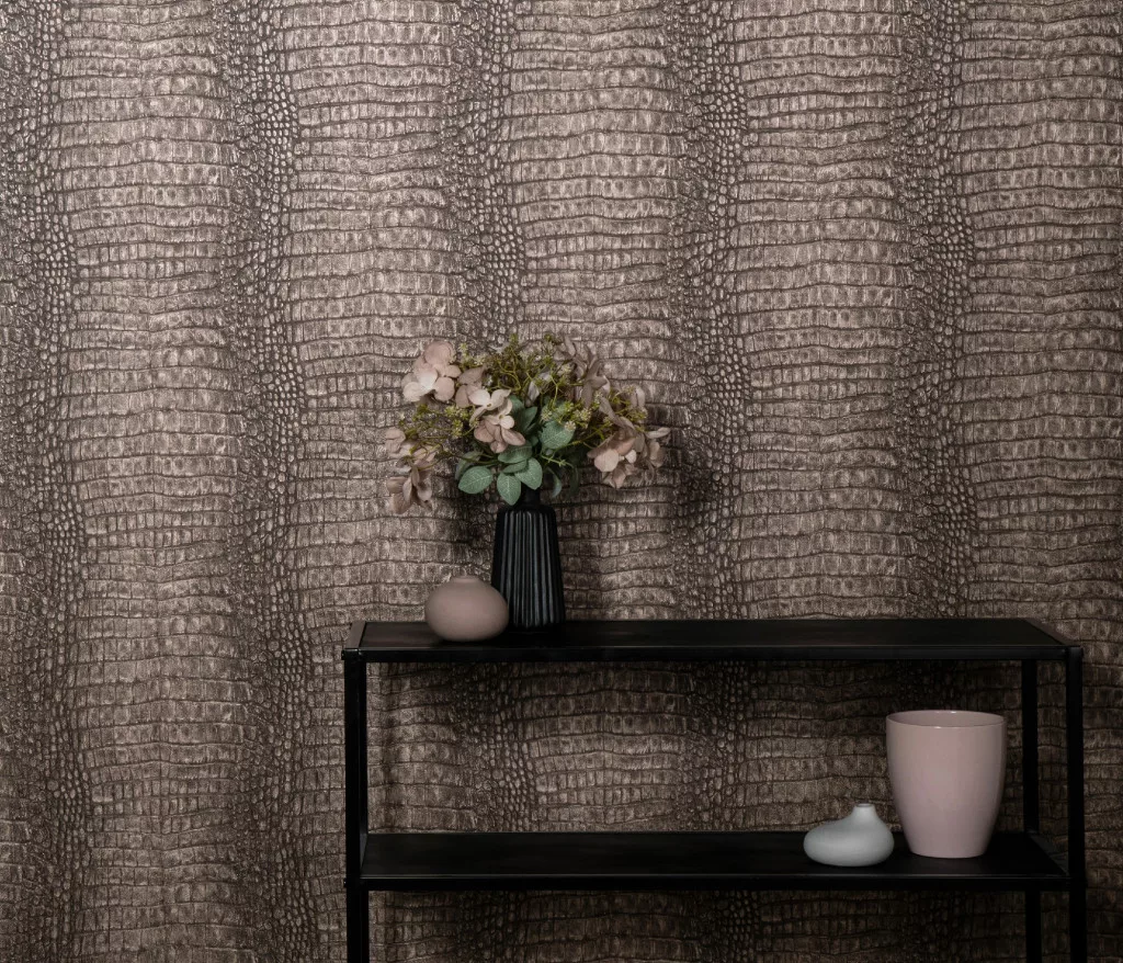 Forest Dreams: Bronz enyhén csillogó krokodilbőr mintás texturált hatású (lángálló, mosható) vlies-vinyl tapéta