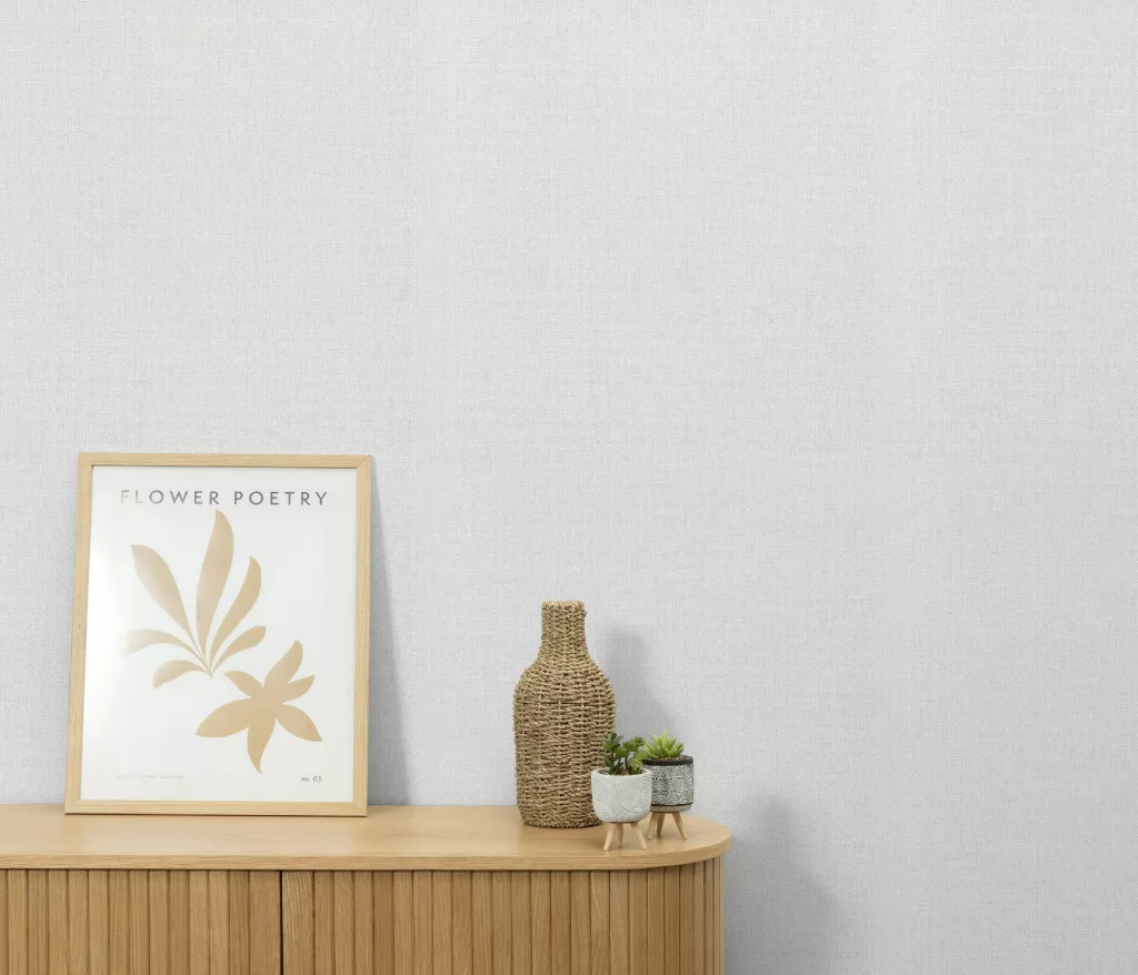 Forest Dreams: Fehér melíros lenes texturált hatású egyszínű (lángálló, mosható) vlies-vinyl tapéta