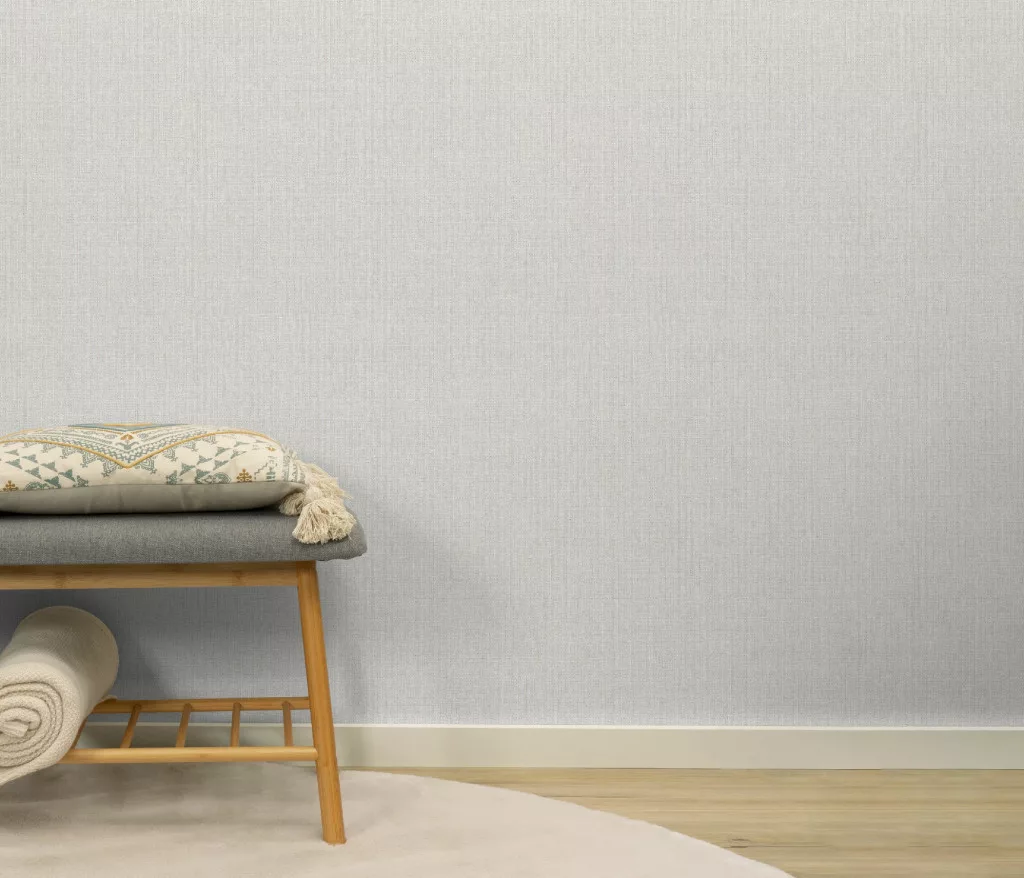 Forest Dreams: Halvány natúr melíros lenes texturált hatású egyszínű (lángálló, mosható) vlies-vinyl tapéta