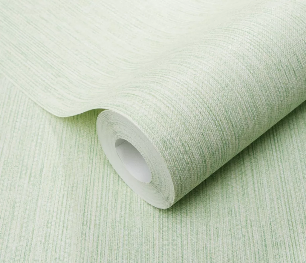 Forest Dreams: Halvány zöld melíros lenes texturált hatású egyszínű (lángálló, mosható) vlies-vinyl tapéta