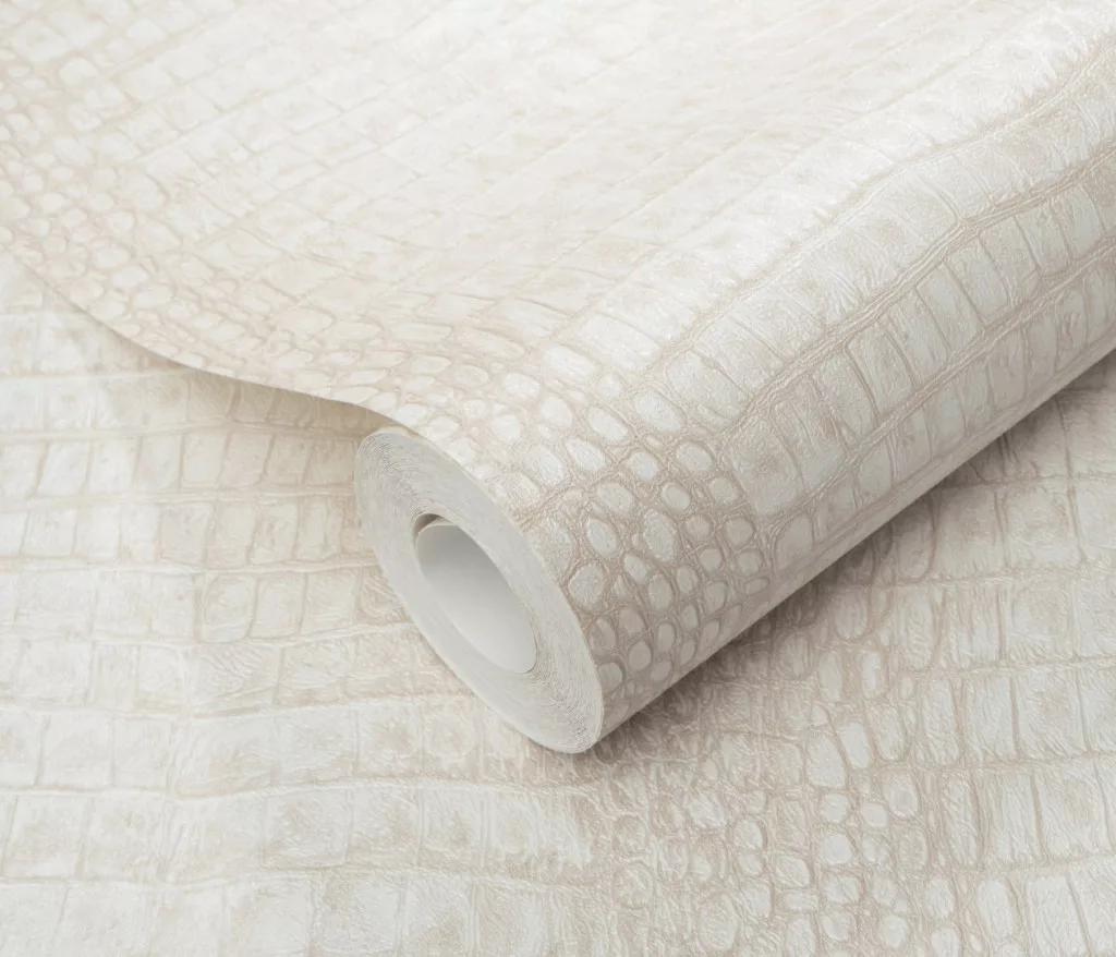 Forest Dreams: Krém enyhén csillogó krokodilbőr mintás texturált hatású (lángálló, mosható) vlies-vinyl tapéta