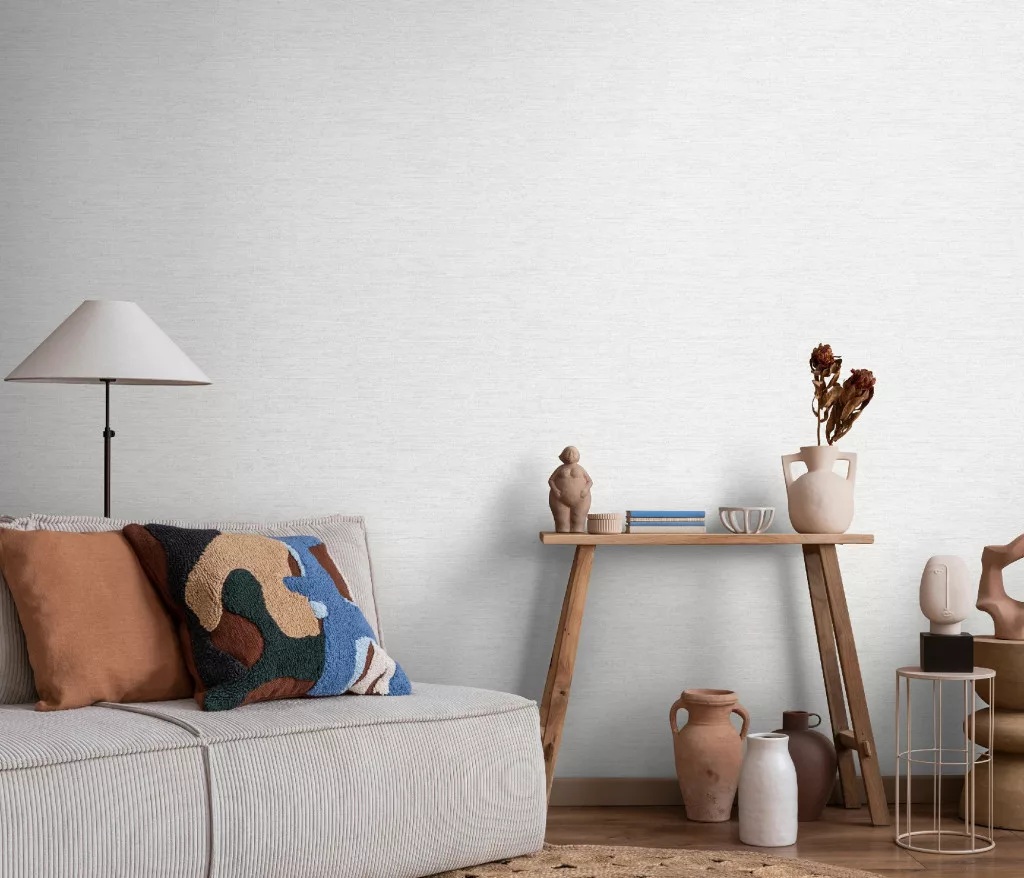 Forest Dreams: Törtfehér egyszínű texturált (lángálló, mosható) vlies-vinyl tapéta