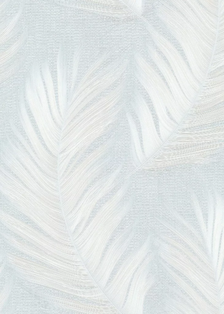 H.kék alapon fehér tollas csillámos elegáns strukturált vlies-vinyl tapéta