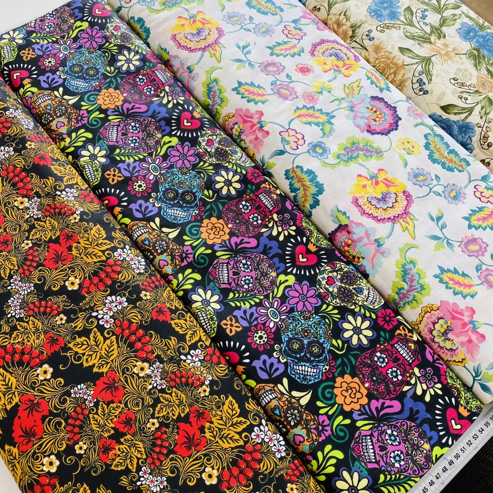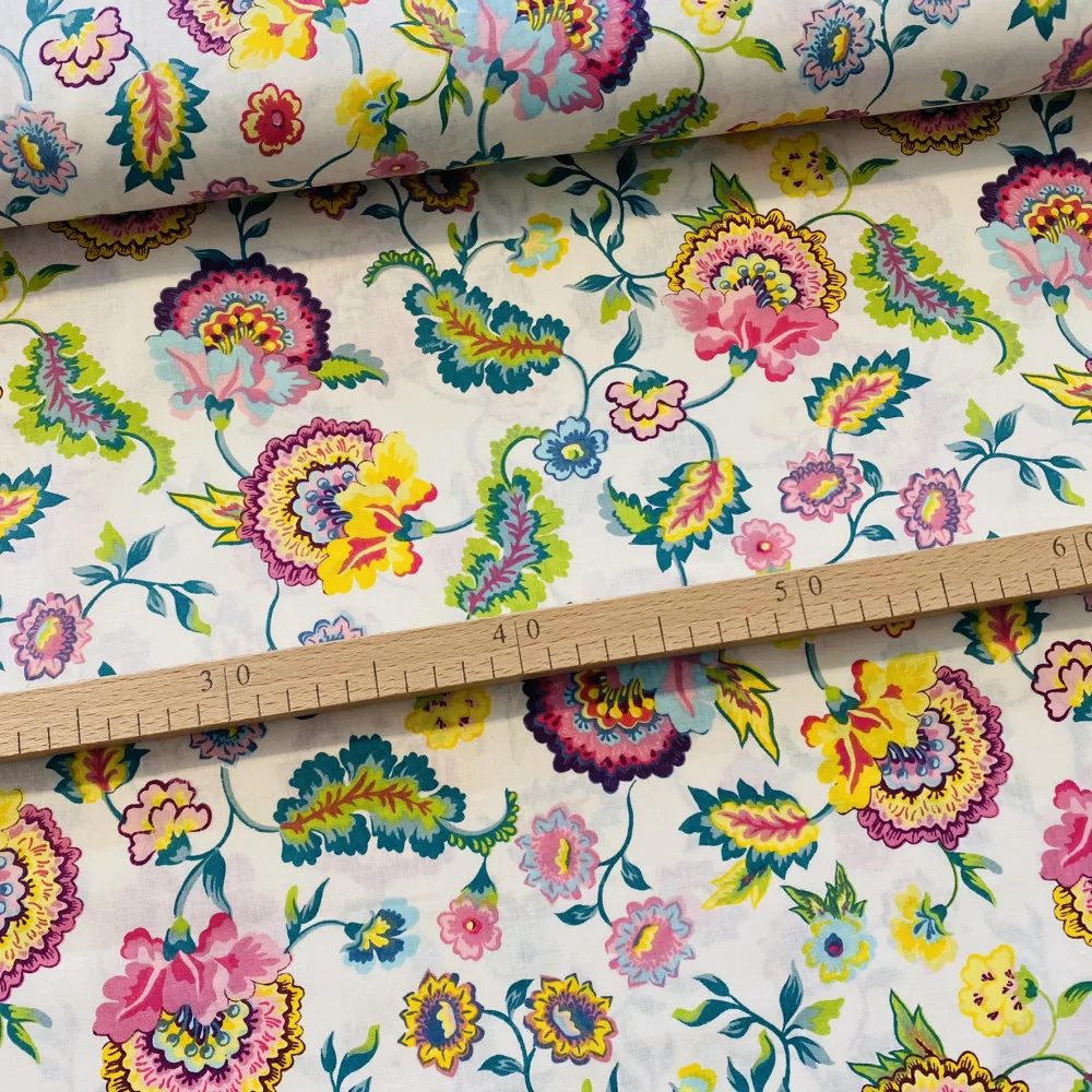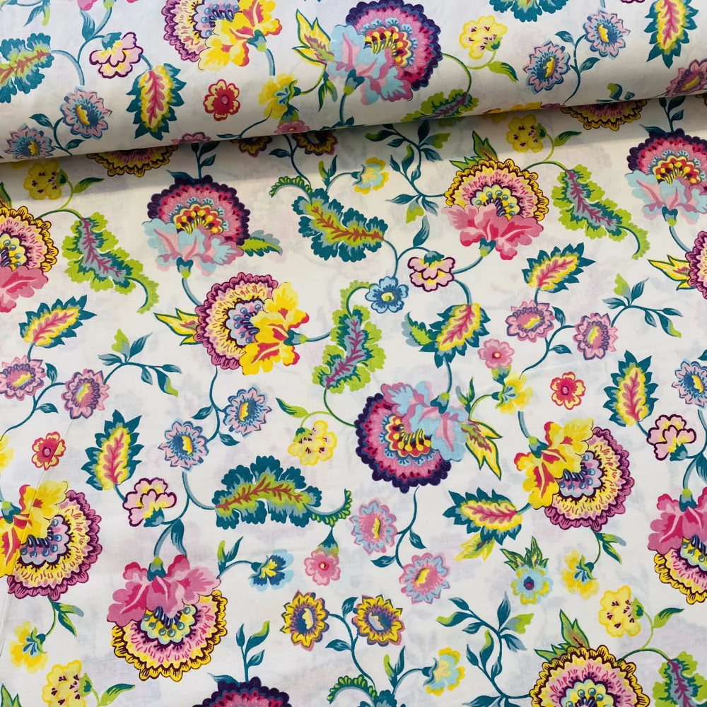 KIÁRUSÍTÁS: Ekrü a. színes varázsvirágos pamutvászon