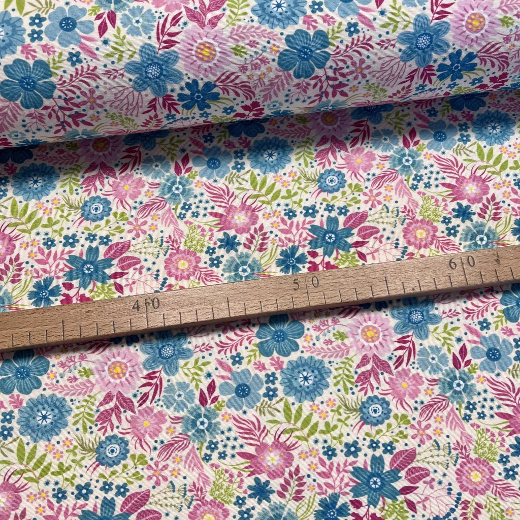 Kedves virágos: Fehér a. kék-rózsaszín dekortextil (digitálisan nyomott)