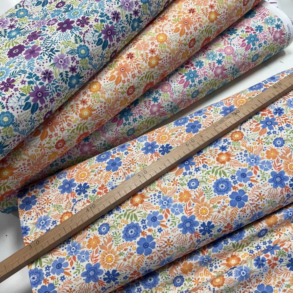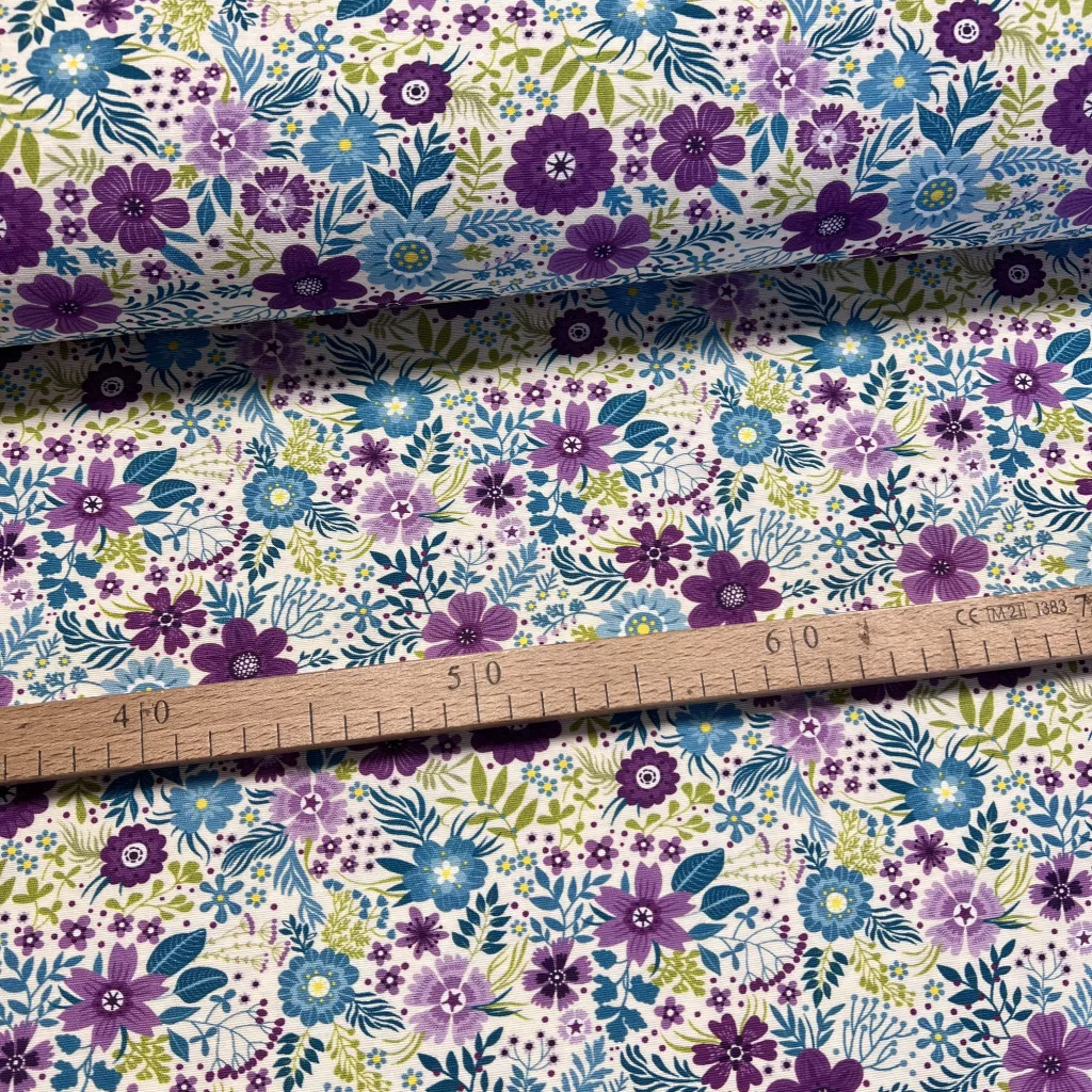 Kedves virágos: Fehér a. lila-kék dekortextil (digitálisan nyomott)