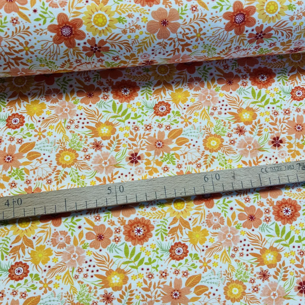 Kedves virágos: Fehér a. narancs-sárga dekortextil (digitálisan nyomott)
