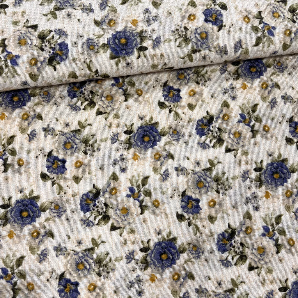 Kék-fehér virágos dekortextil (A)