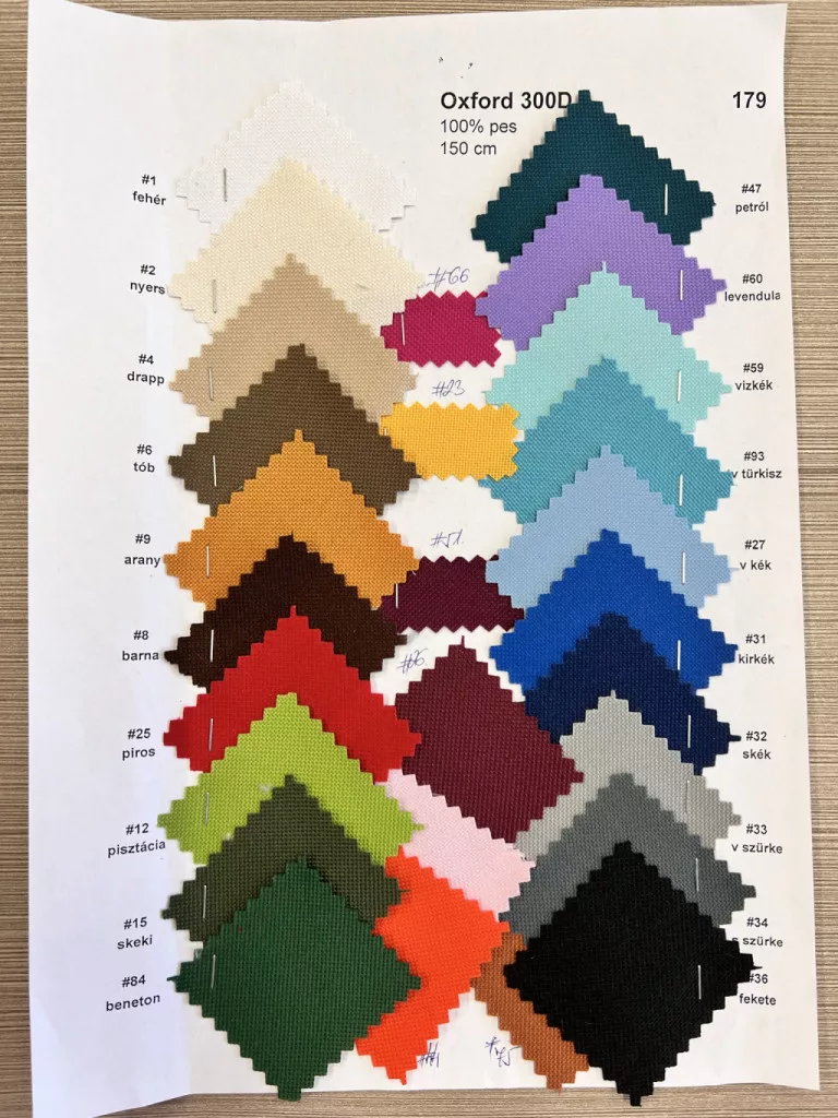 Oeko-Tex I. minősítéssel. Szövés: 300 D Az anyag színváltozatai külön-külön vannak feltöltve webáruházunka. Írja be a keresőmezőbe, hogy 300D és az összes szín megjelenik vagy ugorjon át egy másik színhez az oldalsó színes körökre kattintva!