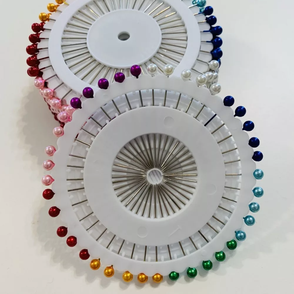 Körben színes műanyag fejű vas gombostű (40 db-os)