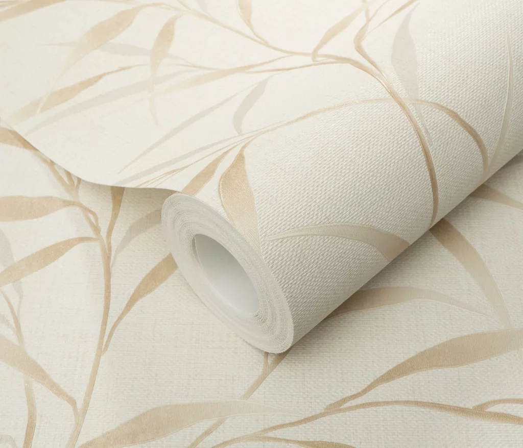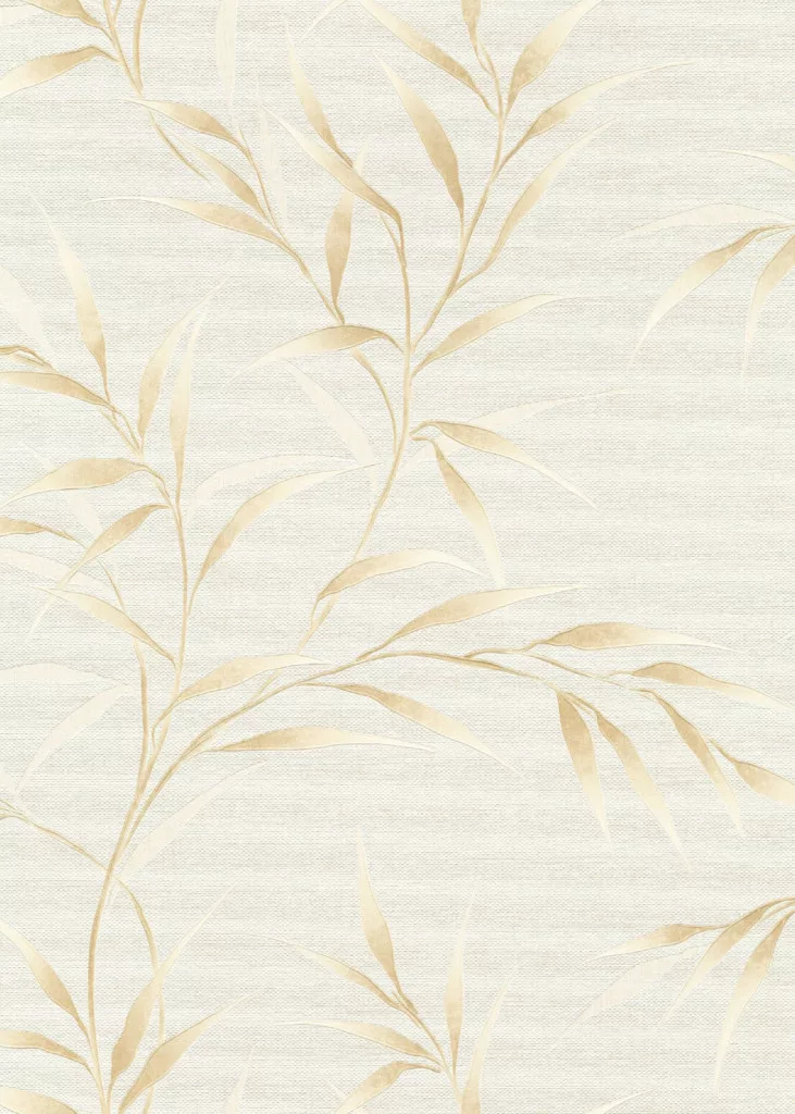 Krém alapon bézses bambusz levél mintás (lángálló, mosható) vlies-vinyl tapéta