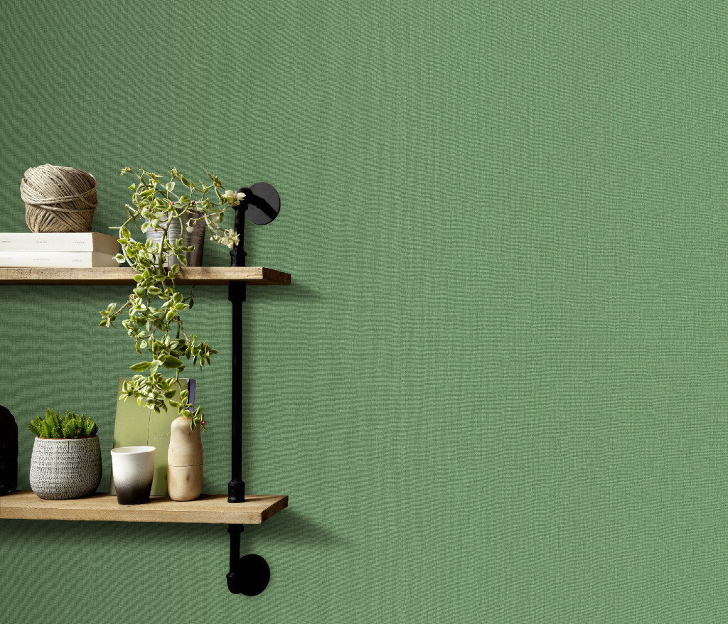 Levélzöld texturált egyszínű (lángálló, mosható) vlies-vinyl tapéta