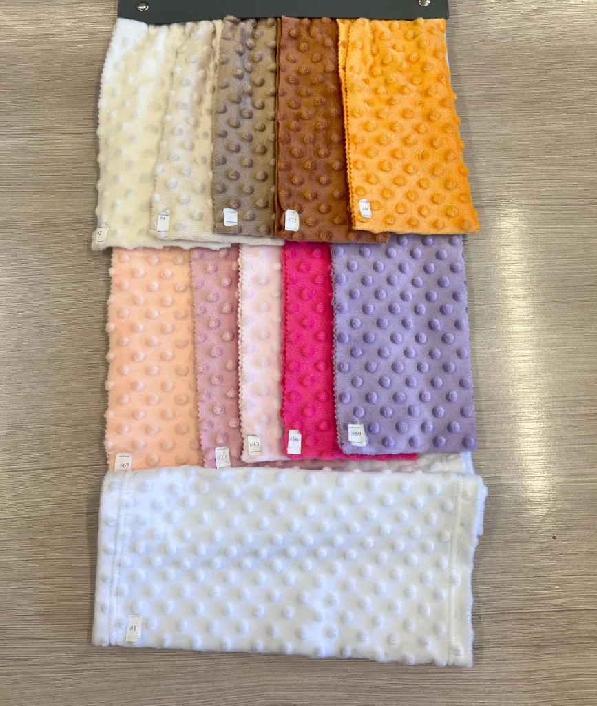 Minky anyagainkból gyerekruha, takaró, kispárna, rácsvédő, nyakpárna és még számtalan dolog készülhet. Pamutvászonnal és wellsoft anyaggal is kombinálható.