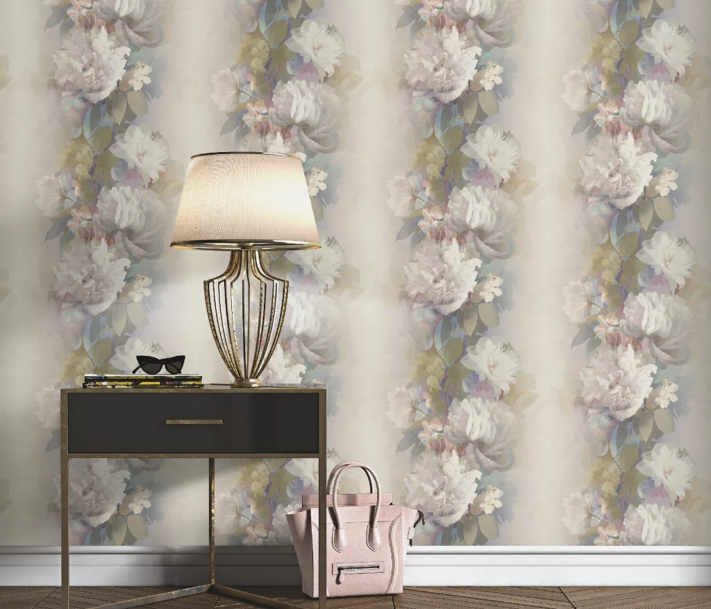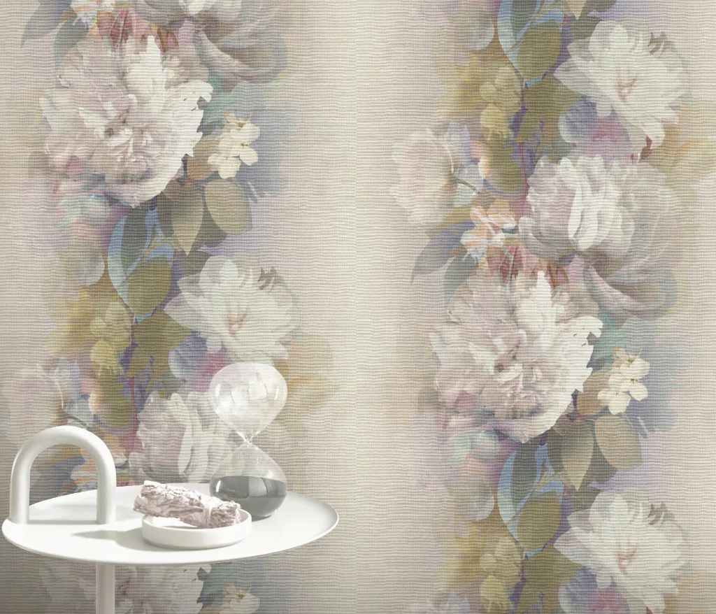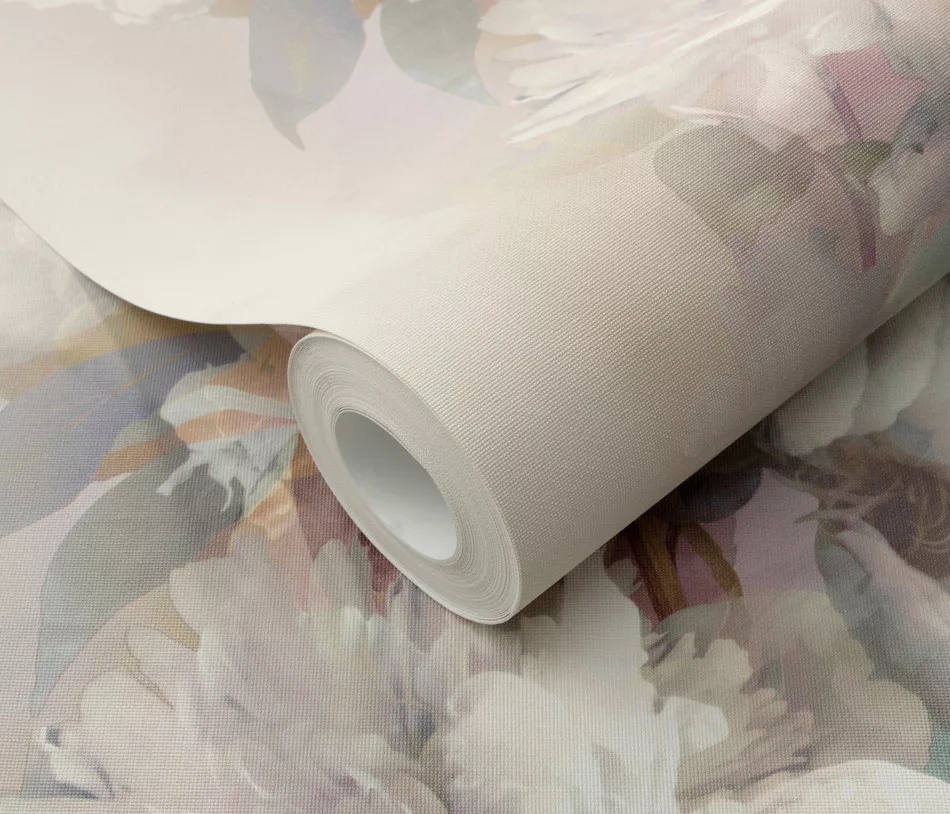 Mályvás alapon nagy színes virágos virágos strukturált vlies-vinyl tapéta