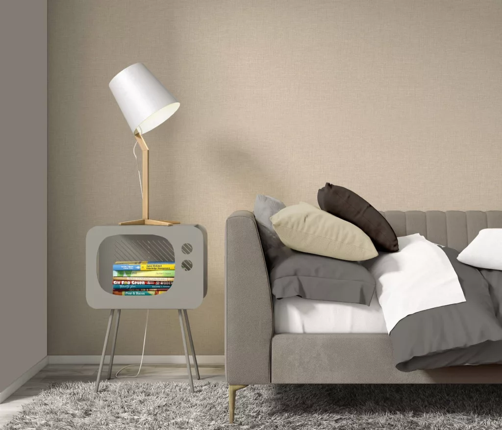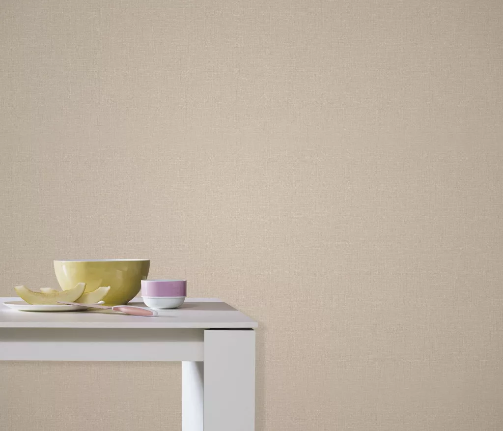 Melegbézs lenes textúrájú egyszínű (lángálló, mosható) vlies-vinyl tapéta