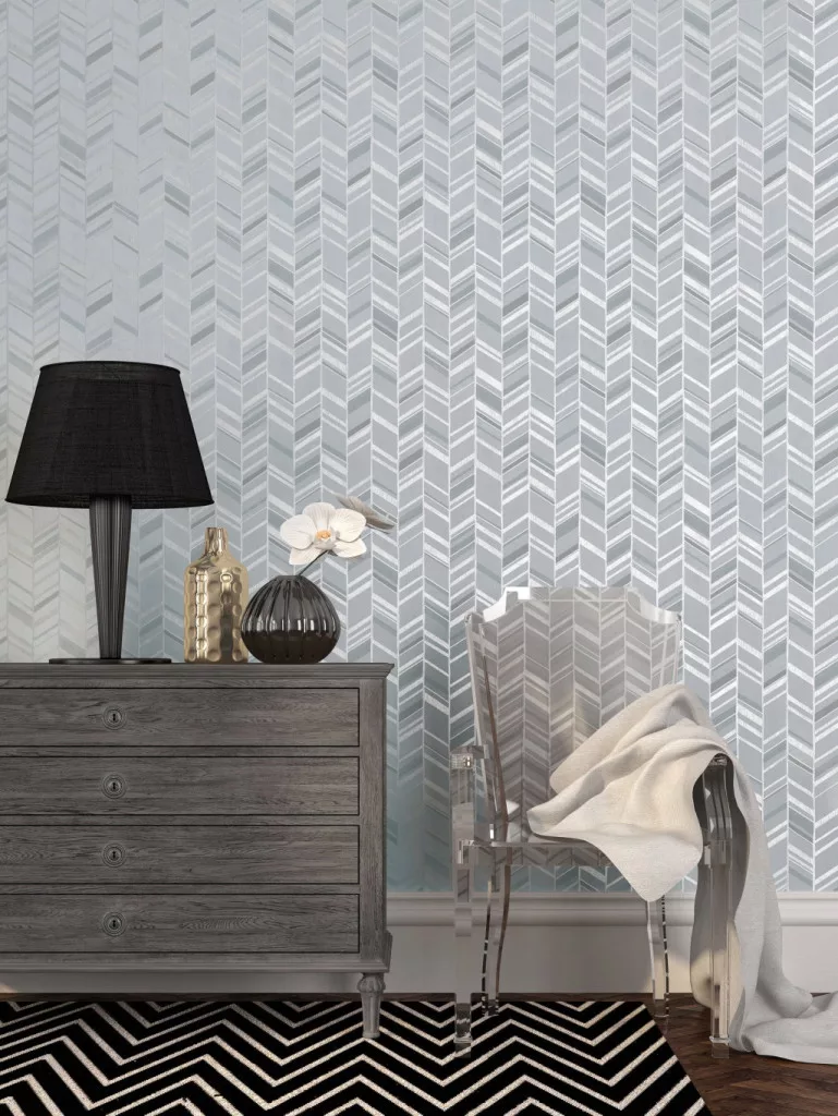 Metálos kollekció Speciel FX2: Ezüstös halszálka-chevron mintás (mosható) vlies-vinyl tapéta